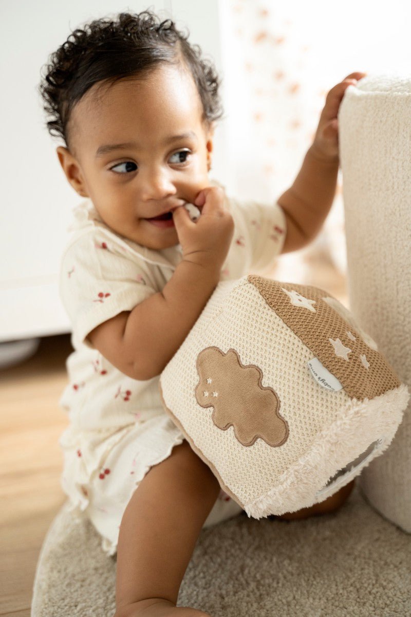 Dzięki miękkiej, bezpiecznej i poręcznej konstrukcji kostka jest idealna dla małych rączek. neutral e kolory iwyrafinowane wykończenie płynnie pasują do kojącego stylu kolekcji Heaven. Kochająca i stylowa zabawka, która zapewnia zabawę zarówno w domu, jak i w podróży.