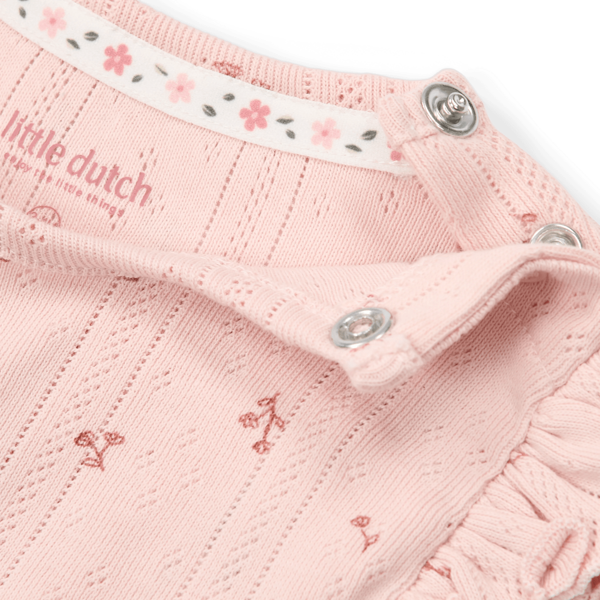Pozwól swojemu maluchowi zabłysnąć w tym słodkim romperze bez rękawów z nadrukiem Fairy Flowers. Miękka faktura pointelle daje subtelny efekt zabawy, a falbanki na ramionach zapewniają delikatny i wyrafinowany detal. Idealny na letnie dni lub jako wygodna warstwa pod kardigan.