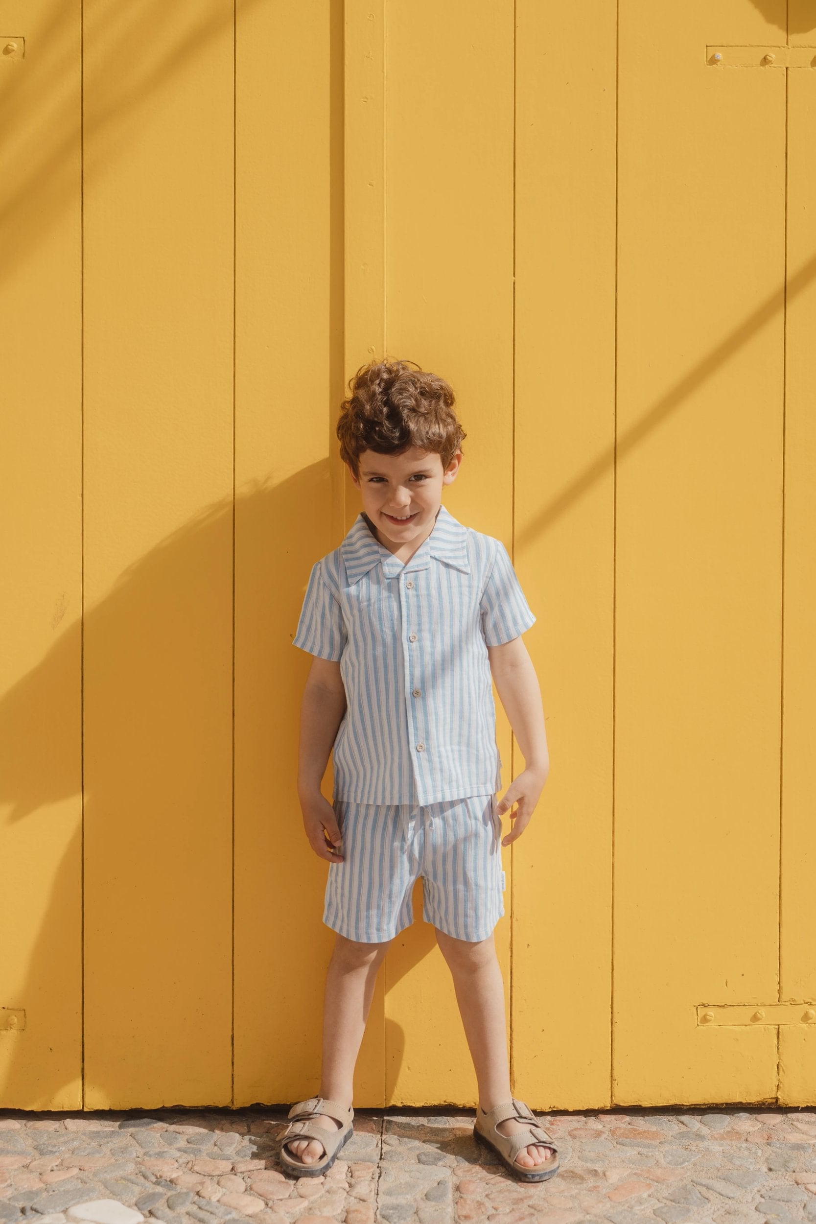 Fris, luchtig en vol kleur: deze blouse met korte mouwen is gemaakt van zachte mousseline-stof en heeft een vrolijk meerkleurig streeppatroon. Het kraagje en de subtiele borstzakjes geven de blouse een verzorgde uitstraling, terwijl de houtlook knoopjes een natuurlijk accent toevoegen. Gemaakt van 100% biologisch katoen en Oeko-Tex gecertificeerd, voelt de blouse licht, ademend en comfortabel aan – perfect voor zomerse avonturen in stijl.