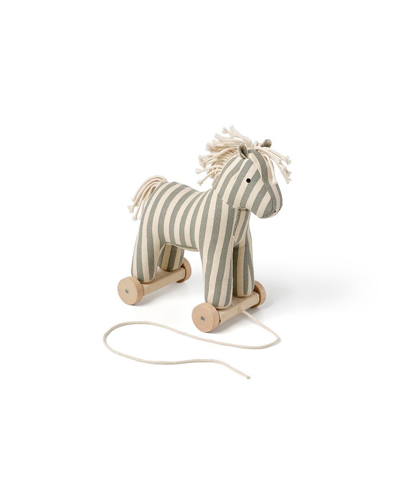 Poznaj Sama, uroczego konika do ciągnięcia, wykonanego z wytrzymałego bawełnianego płótna z wzorem w paski. Jego miękka bawełniana grzywa i ogon zachęcają zarówno do przytulania, jak i aktywnej zabawy. Dzięki sznurkowi dzieci mogą z łatwością zabierać Sama ze sobą na spacery, zachęcając do równowagi i koordynacji. Po zdjęciu kółek Sam zamienia się w pluszowego konika, idealnego na spokojne chwile lub fantazyjną zabawę. Jego przyjazny wygląd, miękka tekstura i praktyczny rozmiar sprawiają, że Sam jest niezawodnym towarzyszem zabaw zarówno w podróży, jak i w domu.