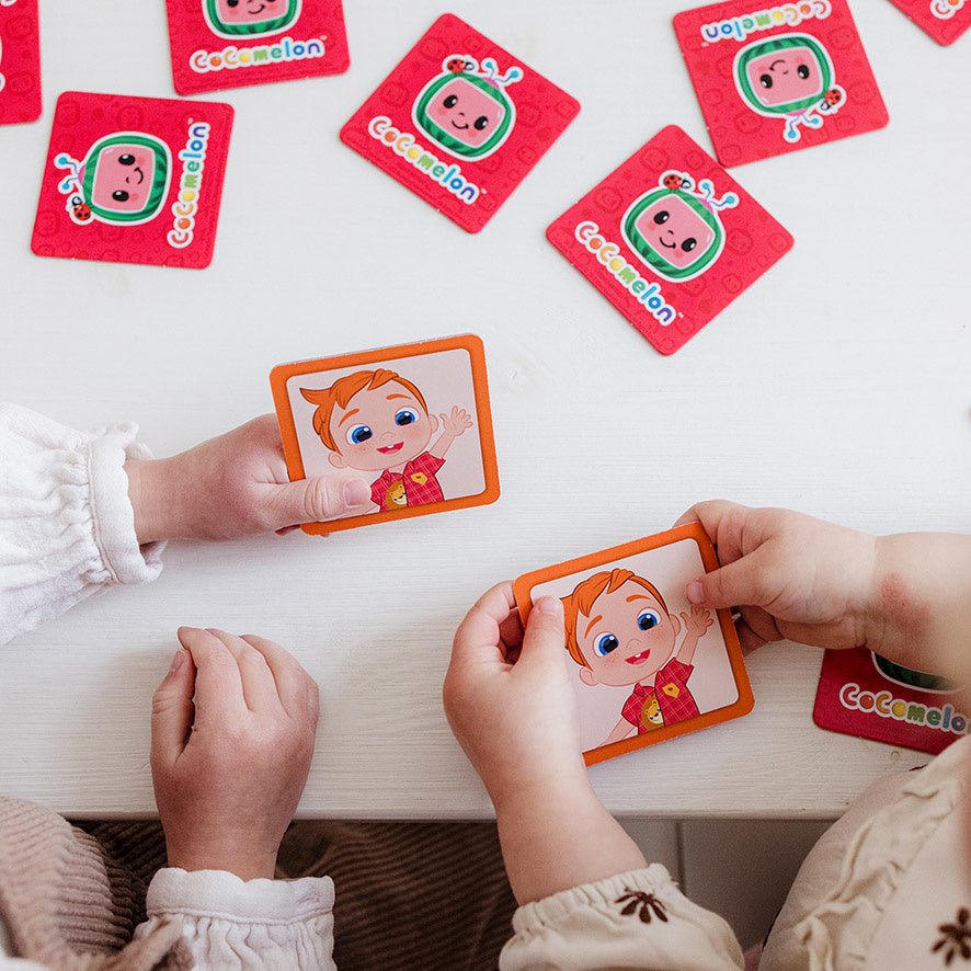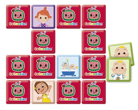 Gra Memo jest znana każdemu, a dzieci ją uwielbiają. Obrazy z serii Cocomelon zostały wykorzystane w tej grze memo, dzięki czemu jest ona bardzo rozpoznawalna i sprawia dzieciom dodatkową frajdę. Poszukaj JJ, YoYo Nina, Mochi, Boba i innych znanych postaci ze świata Cocomelon. Ta gra memo zawiera 36 bardzo dużych kart wykonanych z bardzo wytrzymałego kartonu. W przypadku mniejszych dzieci rozsądnie jest zacząć od ograniczonej liczby kart.
