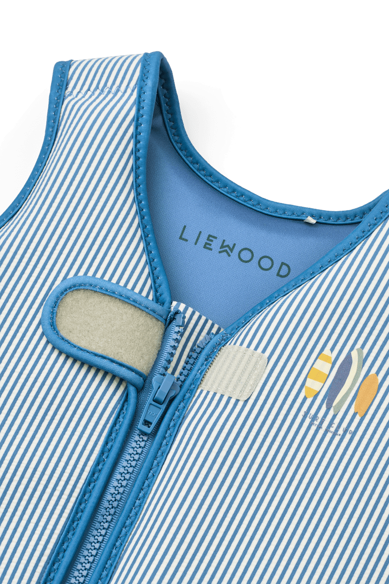 Pozwól swojemu dziecku bezpiecznie i pewnie eksplorować wodę w tej wesołej kamizelce ratunkowej. Lekka i elastyczna konstrukcja zapewnia optymalną swobodę ruchów, a kolorowe paski nadają jej letni wygląd.
