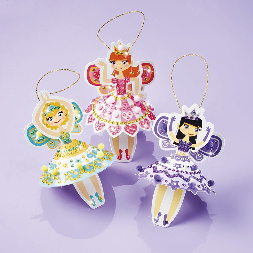 Najpierw udekoruj same wróżki cyrkoniami, a następnie uzupełnij ich stroje, ładnie dekorując spódnice wróżek cyrkoniami i pomponami.