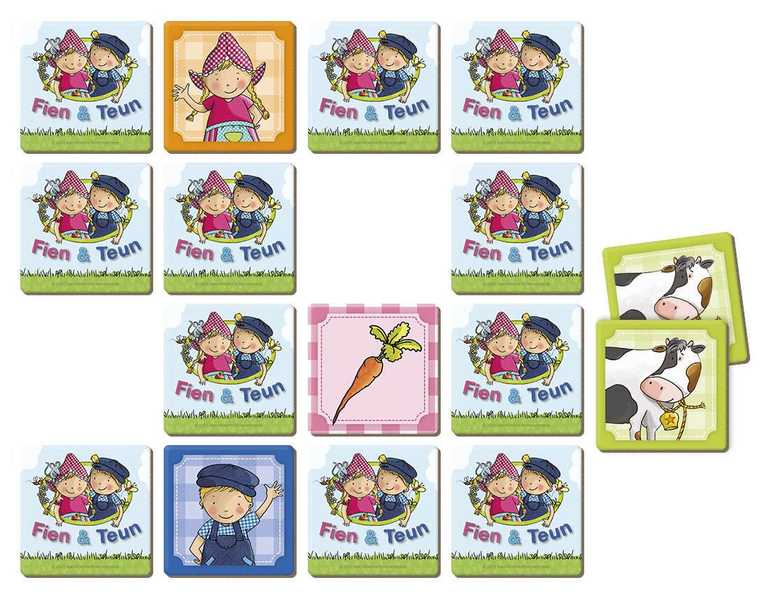 Odwróć dwie karty za każdym razem i spróbuj zapamiętać, gdzie znajdują się dwie takie same karty. Kto ma najwięcej par, wygrywa. Na kartach znajdują się zdjęcia Fien, Teun, zwierząt gospodarskich, owoców i wiele innych.