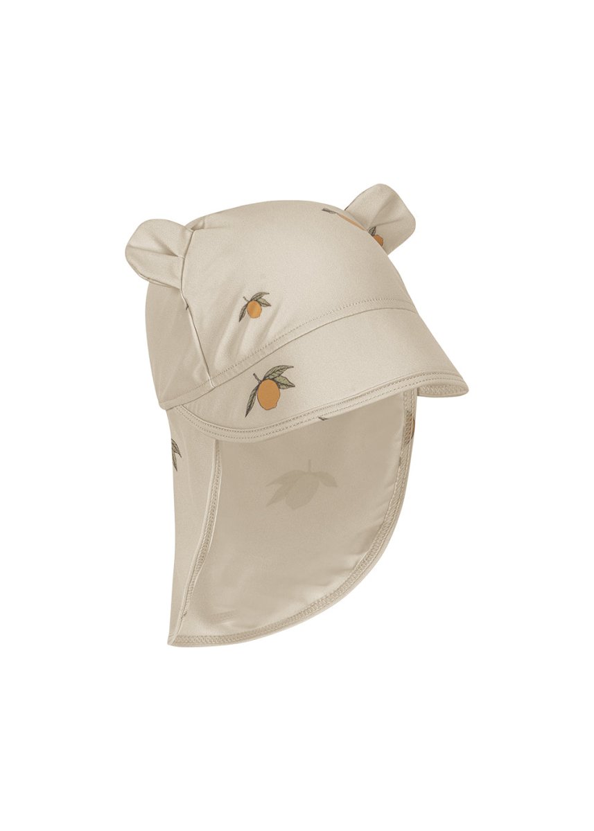 Uroczy kapelusz przeciwsłoneczny z bardzo długim materiałem z tyłu, aby chronić szyję Twojego noworodka przed słońcem. Małe uszy niedźwiedzia na górze sprawiają, że jest zabawny i zabawny. Oferuje ochronę UPF 40+ przed promieniami UV.