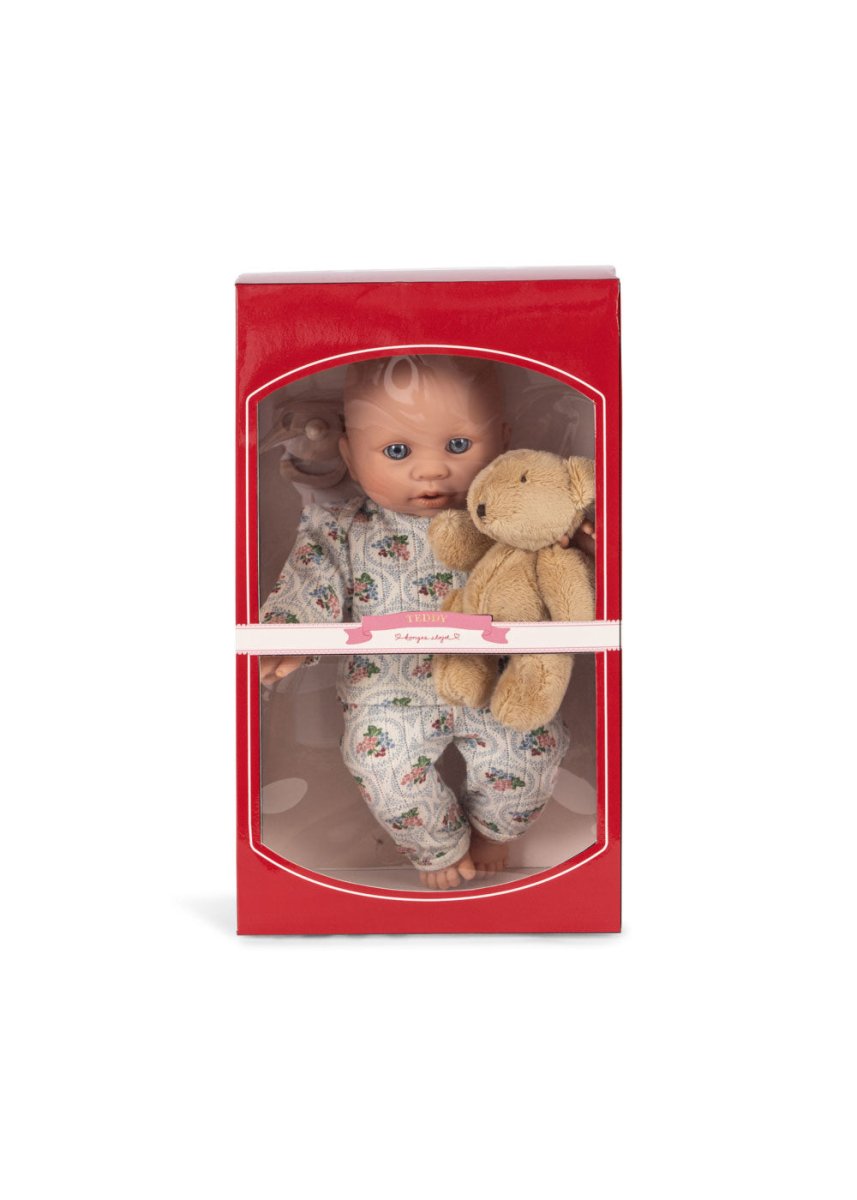 Zawiera miękki zestaw piżamowy, smoczek i małego misia