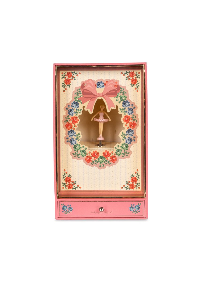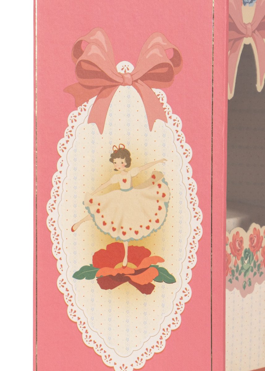 To słodkie pudełko na skarby zawiera baletnicę w stylu vintage, która ożywa po naciśnięciu przycisku z tyłu pudełka. Pozytywka gra melodię i sprawia, że baletnica obraca się i porusza, co czyni ją magicznym dodatkiem do każdego pokoju dziecięcego.