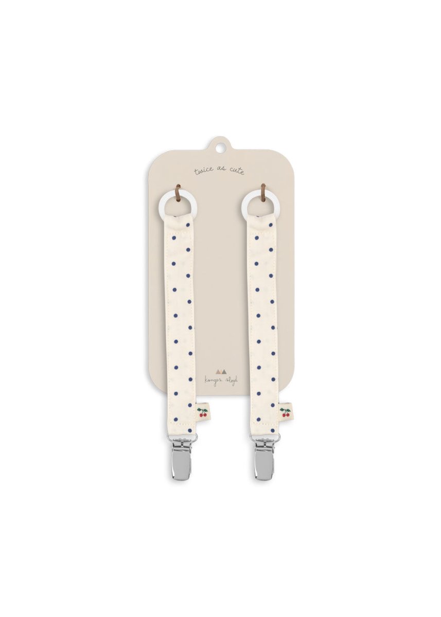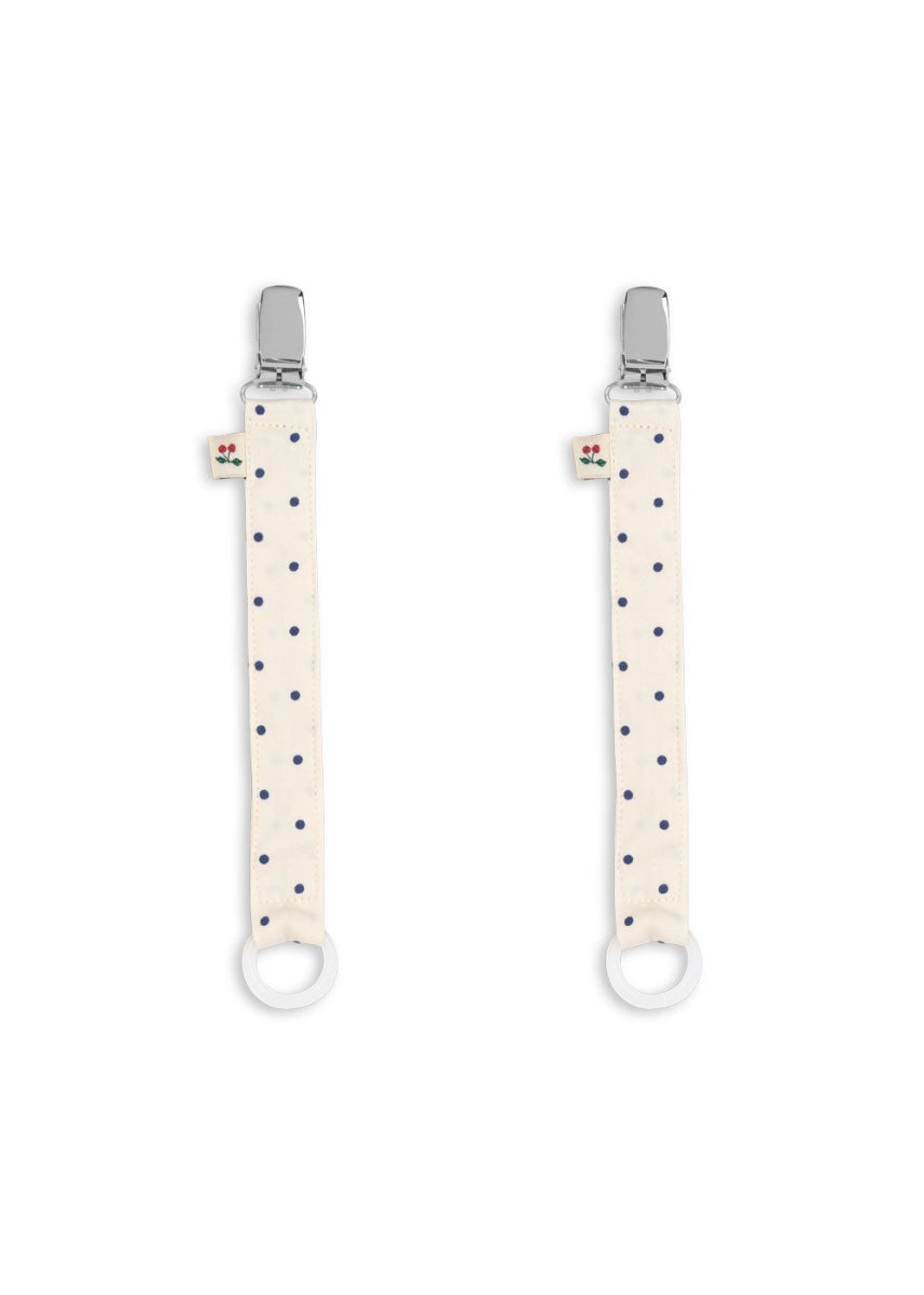 Dzięki tym praktycznym smoczkom od Konges Slojd Twoje dziecko zawsze będzie miało swój smoczek w zasięgu ręki. Klips ułatwia przymocowanie sznurka do ubrania, utrzymując smoczek w czystości i zapobiegając jego zgubieniu. Wzór Estate Dot dodaje stylowego i zabawnego akcentu, który pasuje do każdego stroju.