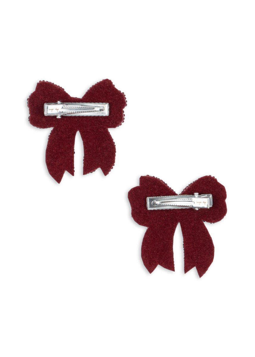 Dodaj odrobinę blasku do każdej stylizacji dzięki tym ręcznie robionym spinkom do włosów od Konges Slojd. Urocze kokardki są ozdobione dekoracyjnymi cekinami i łatwe do przymocowania dzięki małemu żelaznemu klipsowi. Idealne na świąteczne okazje lub jako połyskujący detal do każdego stroju.