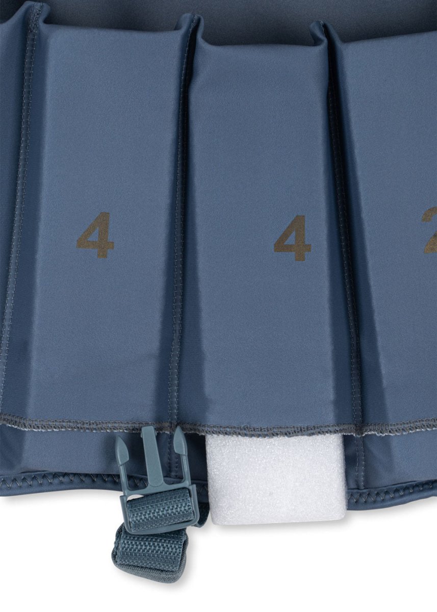 Kamizelka wypornościowa to idealne akcesorium do pływania, gdy Twoje maluchy dopiero zaczynają się pluskać. Dodaje naturalnej pływalności i pomaga im czuć się komfortowo w wodzie podczas nauki samodzielnego pływania. Nasze kamizelki flotacyjne są zaprojektowane z piankowymi patyczkami wewnątrz, które można dostosować do umiejętności i potrzeb dziecka. Pływające patyczki można łatwo usuwać jeden po drugim, w miarę jak Twoje dziecko rozwija swoje umiejętności pływackie. Zawsze wyjmuj drążki parami, zaczynając od 1 & 1, następnie 2 & 2 i tak dalej, aż dziecko będzie w pełni przystosowane do samodzielnego pływania. Gdy dziecko jest już bezpieczne i czuje się komfortowo w wodzie, można całkowicie usunąć pływające pałeczki.