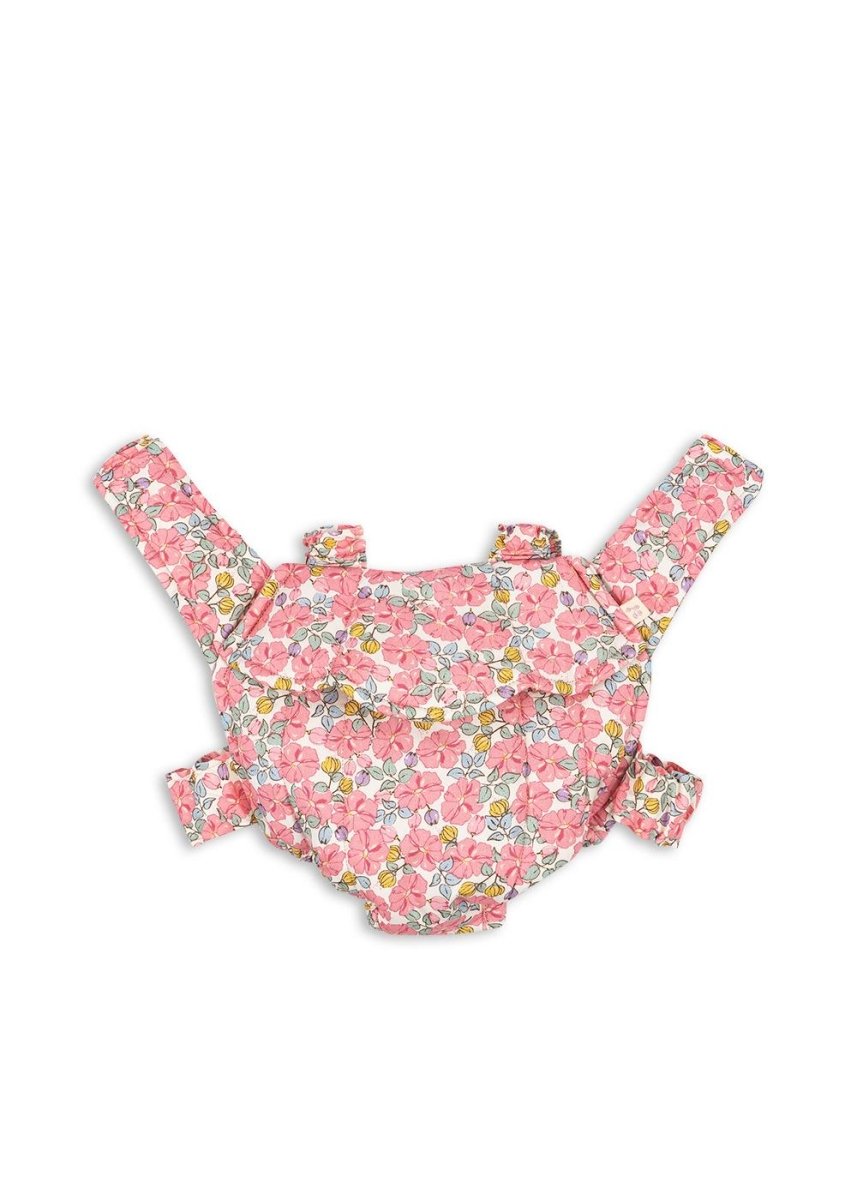 Nosidełko dla lalek dla rodziców małych lalek. Zaprojektowane z elastycznymi paskami i obszyciami w kształcie muszli. Nosidełko jest łatwe w użyciu - wygodne i lekkie. Materiał: Tkanina główna 100% bawełna Wypełnienie 100% poliester.