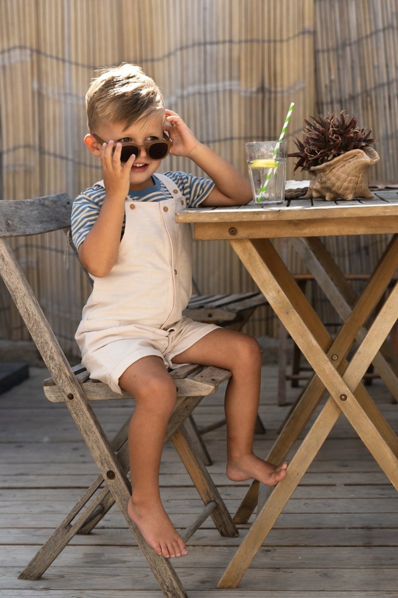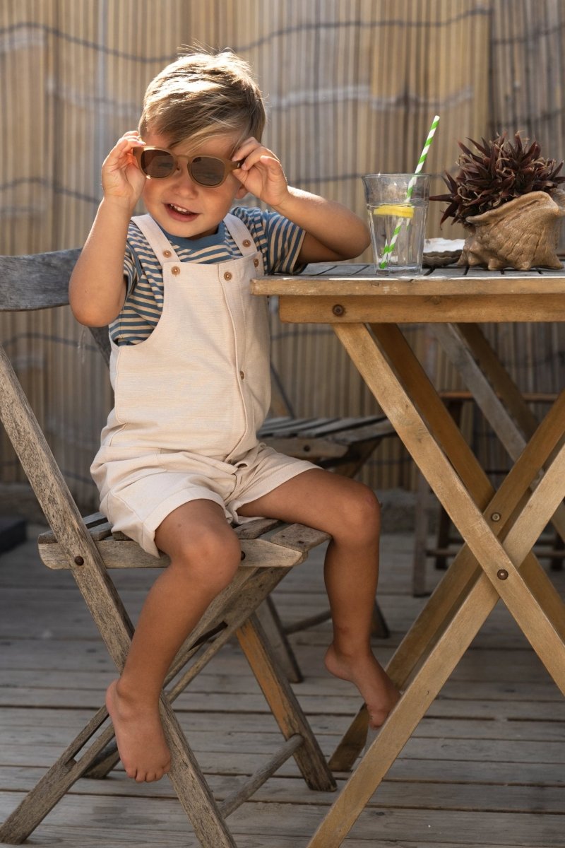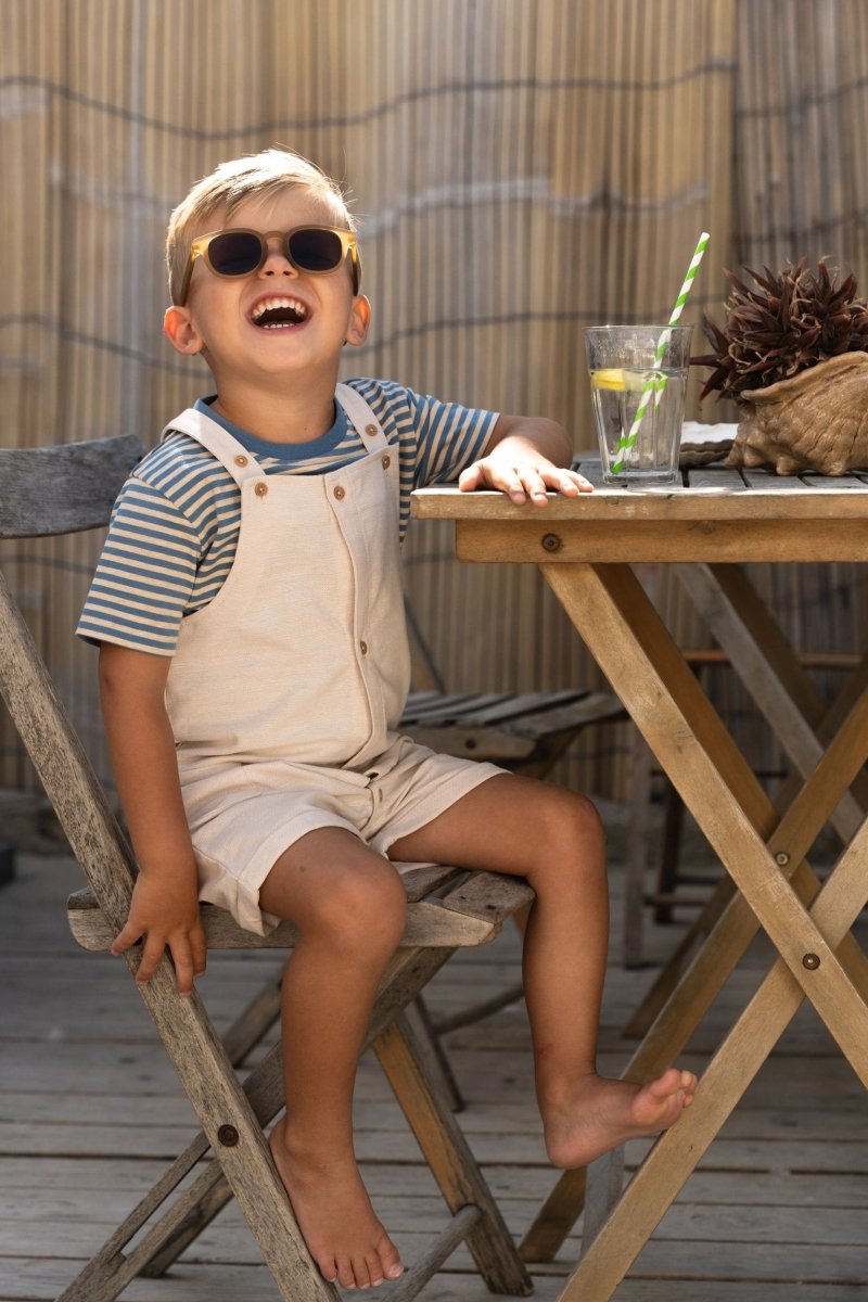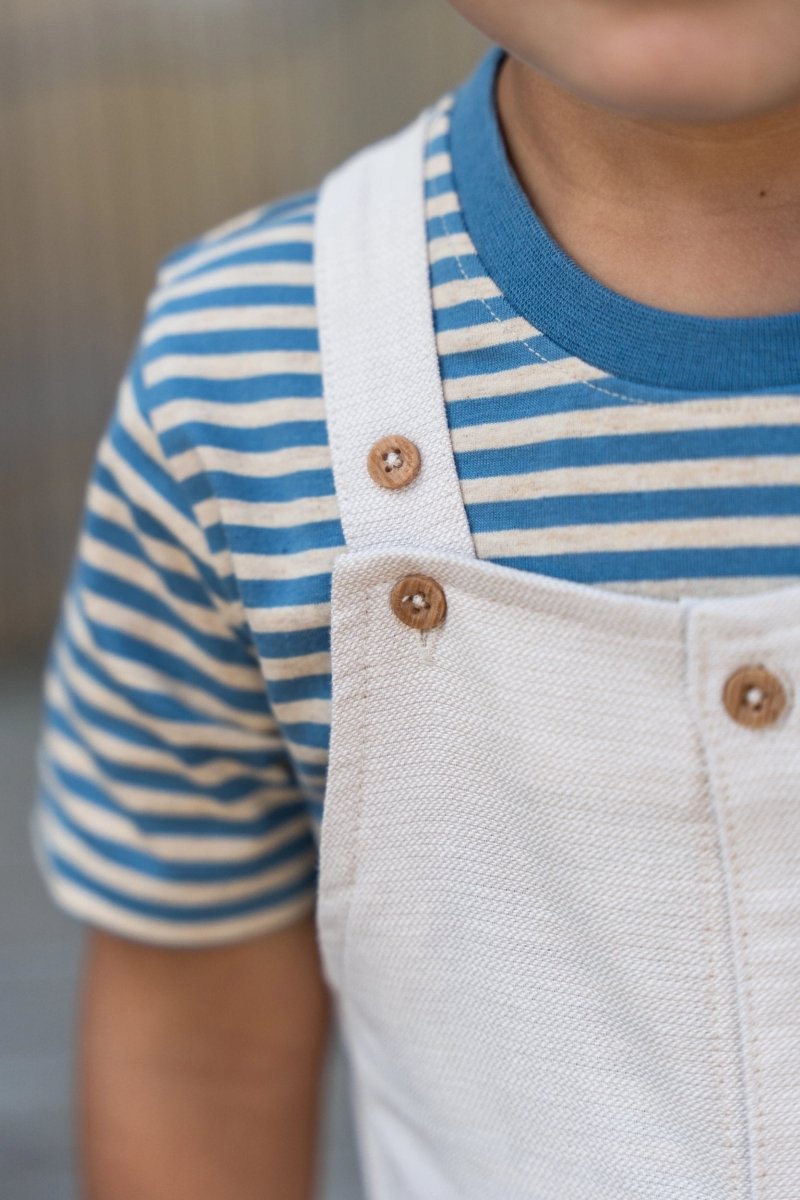 Ta koszulka łączy w sobie świeży pasek z fajnym detalem, dzięki czemu jest natychmiastowym faworytem na każdy dzień. Spokojne kolory indygo i piasku tworzą letni wygląd, który łatwo połączyć. Kontrastowa kieszeń na piersi dodaje zabawnego akcentu i dopełnia koszulkę. Wykonana w 95% z bawełny organicznej i 5% elastanu, z certyfikatem Oeko-Tex, jest miękka, oddychająca i elastyczna - idealna dla chłopców, którzy uwielbiają spędzać czas na świeżym powietrzu.