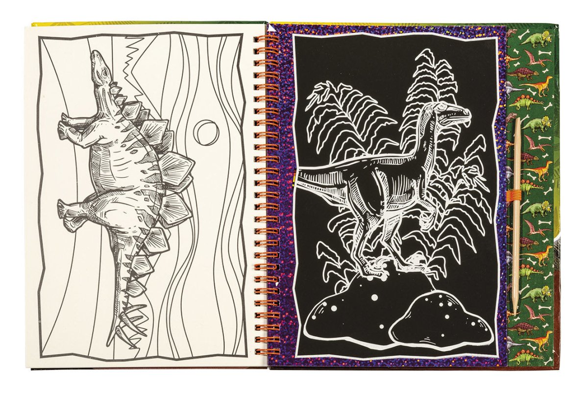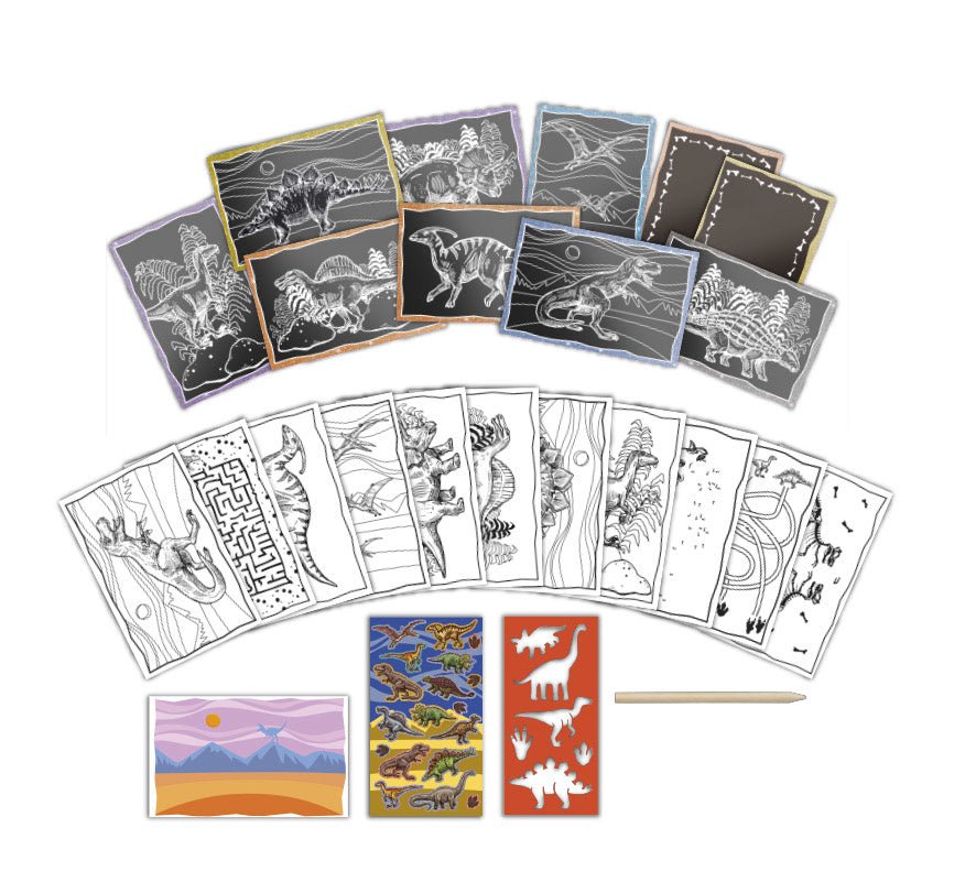 Magiczne! Dzięki tej luksusowej zdrapce możesz stworzyć najpiękniejsze zdrapki dinozaurów z metalicznym efektem, a także pokolorować kolorowe tabliczki. Książeczka ma segregator i jest idealna do domu i w podróży. Koniec z nudnym czekaniem podczas podróży samochodem lub w restauracji