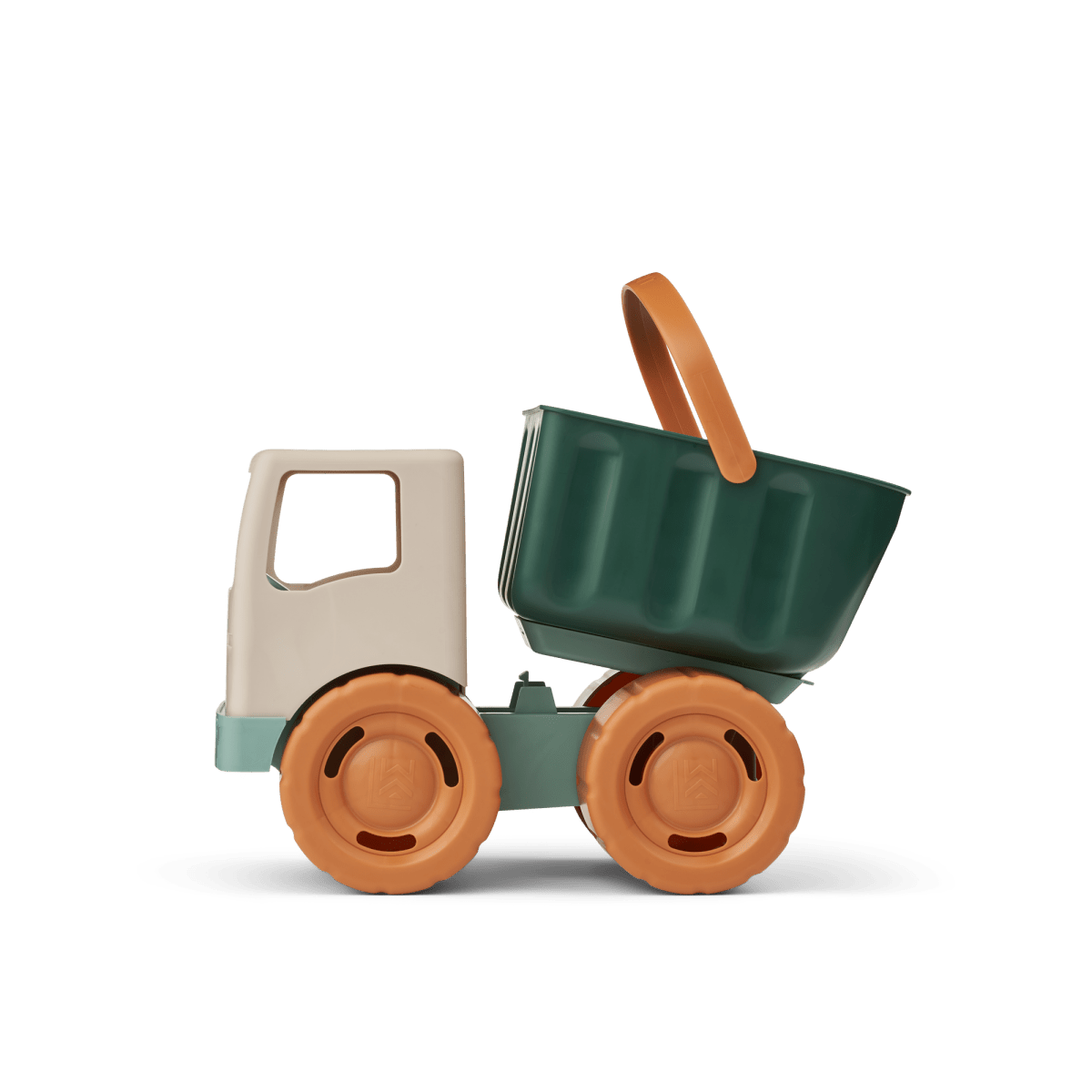 Z funkcją przechylania do rozładunku piasku i uchwytem ułatwiającym przenoszenie