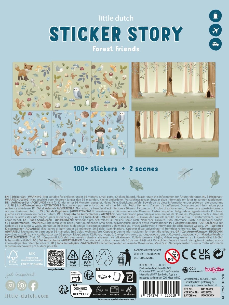 Pozwól wyobraźni ożyć dzięki zestawowi naklejek Little Dutch Leśni przyjaciele! Dzieci mogą wymyślać własne przygody ze słodkimi leśnymi zwierzętami i naturalnym tłem.