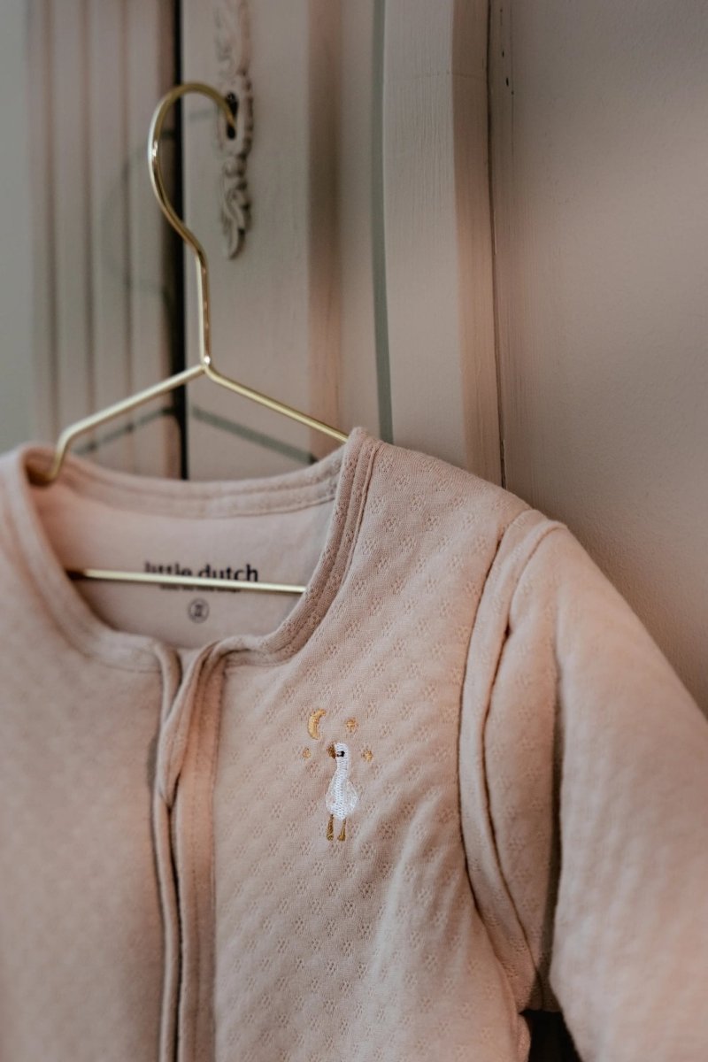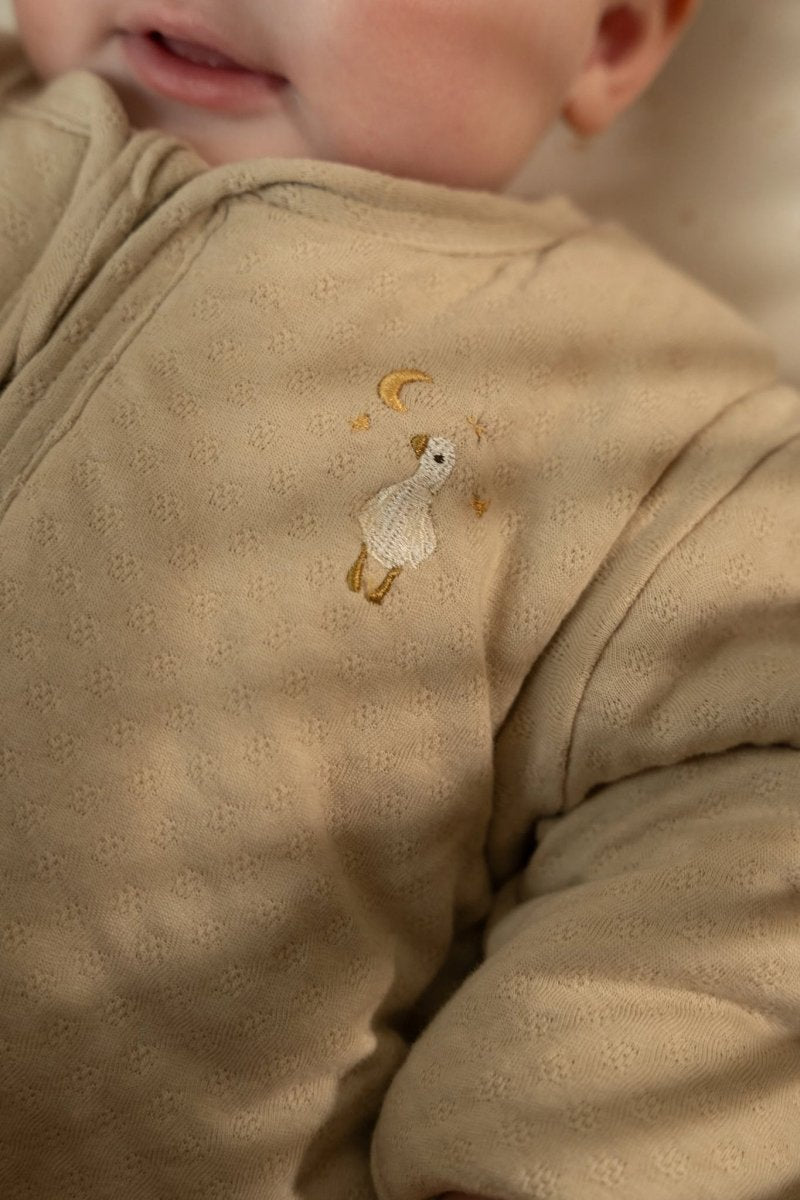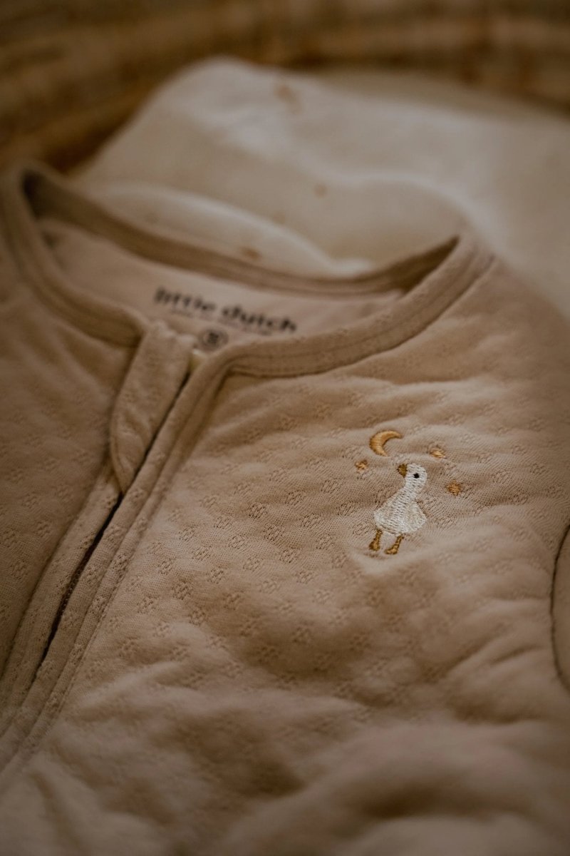 Zapewnij swojemu maluchowi ciepło i przytulność tej zimy dzięki zimowemu śpiworkowi Little Dutch w eleganckim kolorze Soft Beige. Wykonany z luksusowego żakardowego dżerseju i 100% bawełny organicznej, jest cudownie miękki. Uroczy haft gęsi na piersi dodaje uroku, a okrągły dół i odpinane rękawy są praktyczne i wygodne. Idealny na chłodne noce i dla słodkich marzycieli. Nad zamkiem błyskawicznym znajduje się patka chroniąca wrażliwą skórę dziecka. Śpiworek jest dostępny w rozmiarach 70 cm i 90 cm.