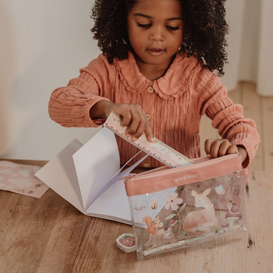 Ten uroczy zestaw piśmienniczy Little Dutch Fairy Garden jest idealny dla małych artystów i pisarzy. Ten zestaw zawiera wszystko, czego potrzebujesz, aby być kreatywnym. Notatnik ozdobiony wróżkami i kolorowymi kwiatami, czarujący arkusz naklejek do rozjaśniania dzieł, solidna linijka do precyzyjnych linii, miękka gumka do wycierania błędów, temperówka do ostrzenia ołówków, ołówek do pisania i rysowania oraz szablon do tworzenia pięknych wzorów inspirowanych naturą. Niezależnie od tego, czy jesteś w domu, w szkole czy w podróży, ten zestaw pobudzi wyobraźnię każdego dziecka, które zanurzy się w magii bajkowego ogrodu.