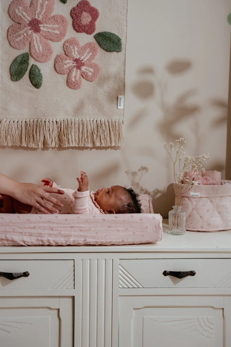 Tkanina gobelinowa Flower z kolekcji Fairy Garden jest wykonana w 100% z bawełny organicznej i stanowi piękny dodatek do pokoju dziecięcego. Gobelin posiada pikowane detale i ozdobne frędzle, dodając zabawny i stylowy akcent do pokoju. Ten nowy element jest idealny do wykończenia pokoju dziecięcego i tworzy ciepłą, przytulną atmosferę.