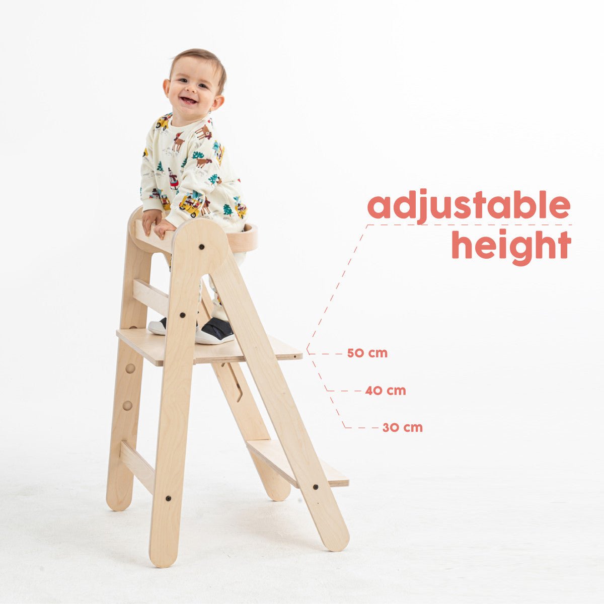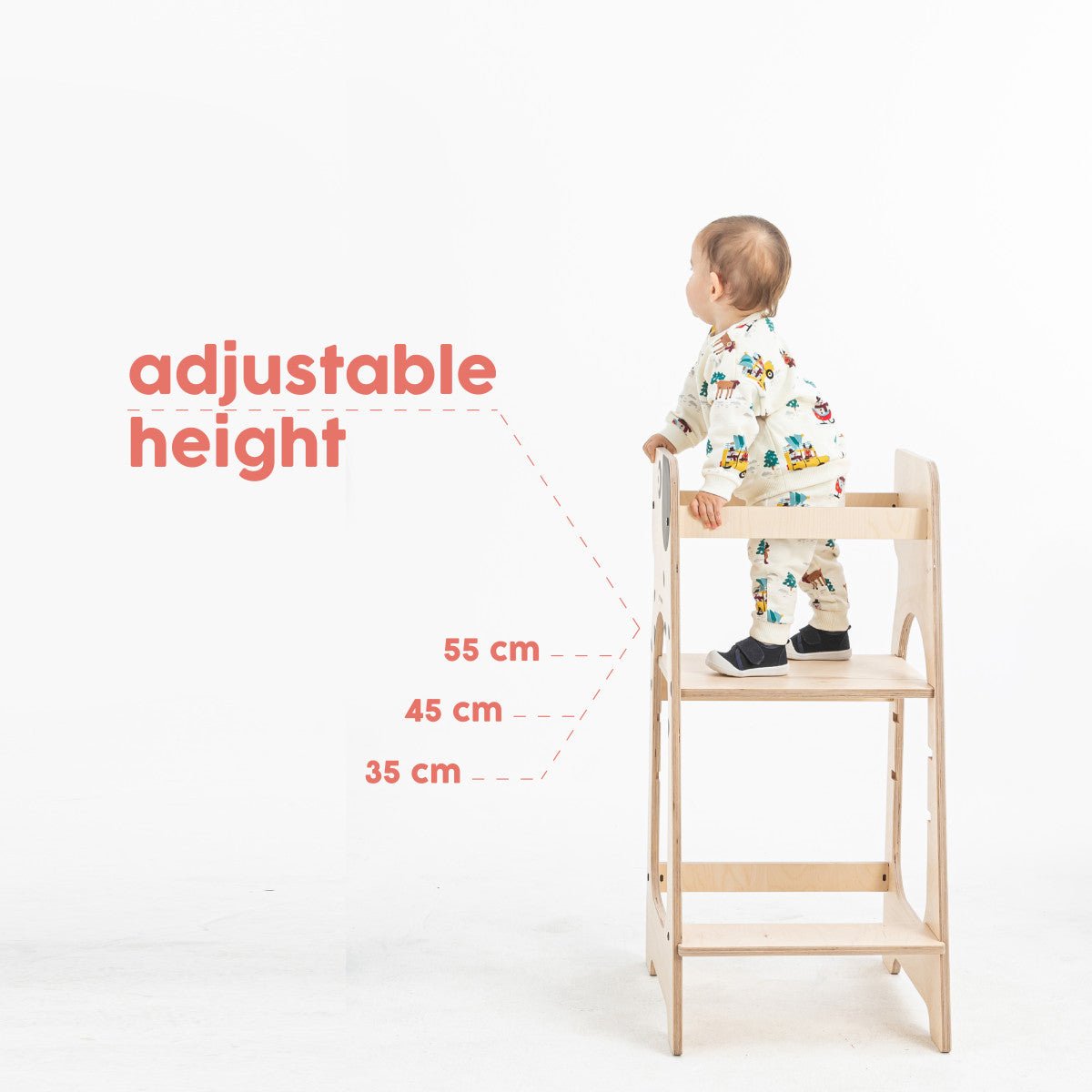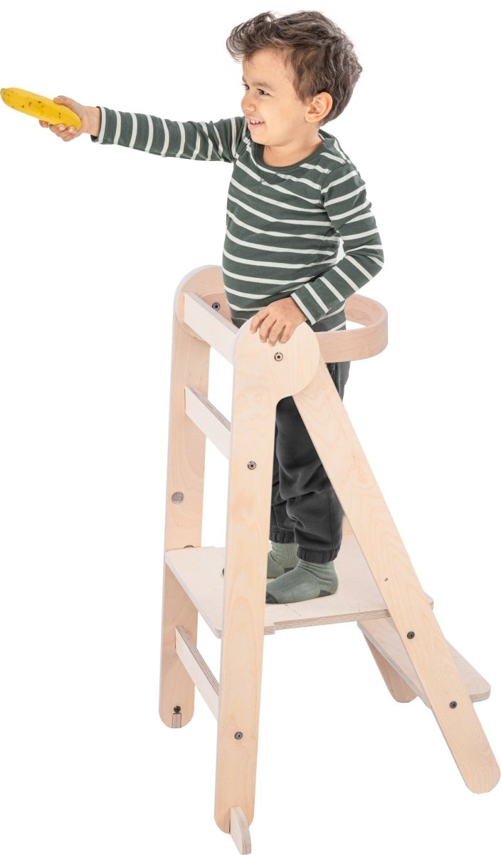 Dzięki trzem regulowanym wysokościom, ta wieża edukacyjna rośnie bez wysiłku wraz z Twoim dzieckiem, od 12 miesięcy do około 5 lat. Wykonana jest z naturalnego drewna, w szczególności brzozy, a zatem nie zawiera żadnych chemikaliów. Bezpieczny i przyjazny dla środowiska wybór!