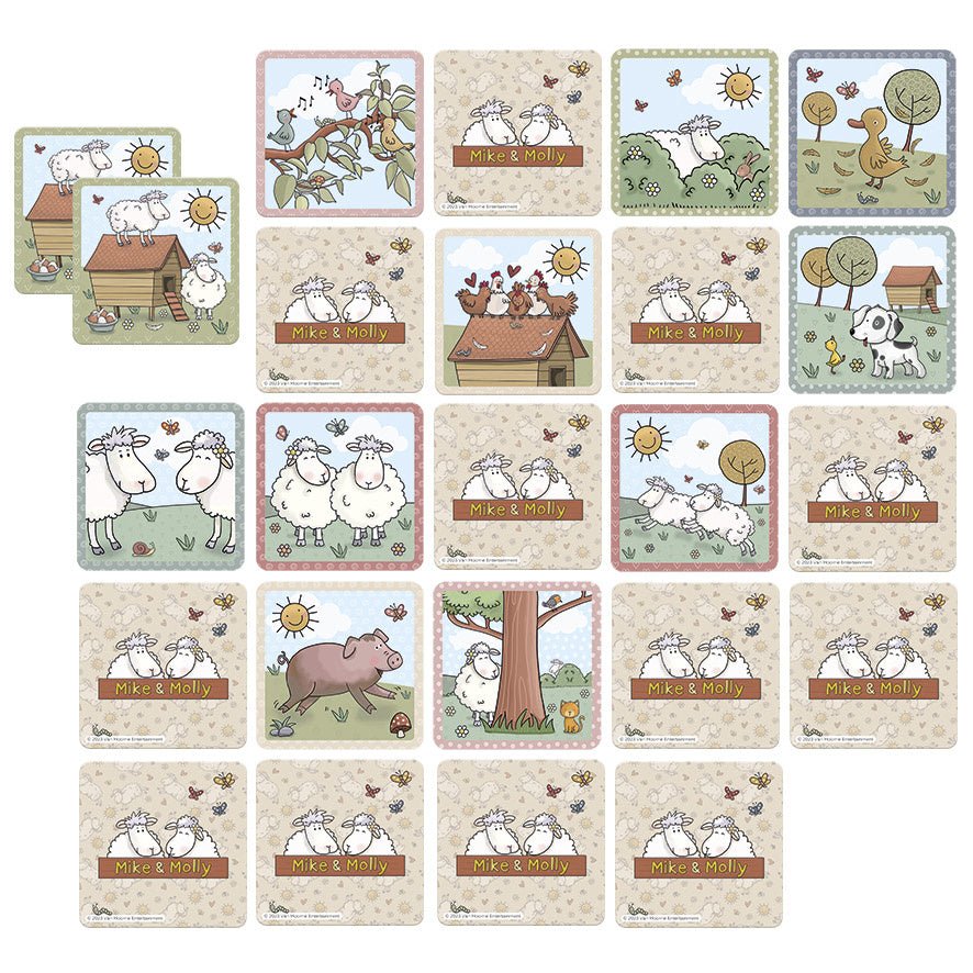 Gdzie, ach gdzie jest ta świnka? Albo te słodkie małe ptaszki? Aby wygrać tę grę memo, musisz uważać, aby znaleźć jak najwięcej obrazków. Memo jest znane każdemu, a dzieci je uwielbiają. Ta gra memo wykorzystuje zdjęcia Mike'a i Molly oraz ich przyjaciół na farmie, dzięki czemu jest bardzo rozpoznawalna i stanowi dodatkową zabawę dla dzieci. Wyrusz na poszukiwanie Mike'a, Molly i ich przyjaciół. Ta gra memo zawiera 24 bardzo duże karty wykonane z bardzo wytrzymałego kartonu. W przypadku mniejszych dzieci zaleca się najpierw zacząć od ograniczonej liczby kart.