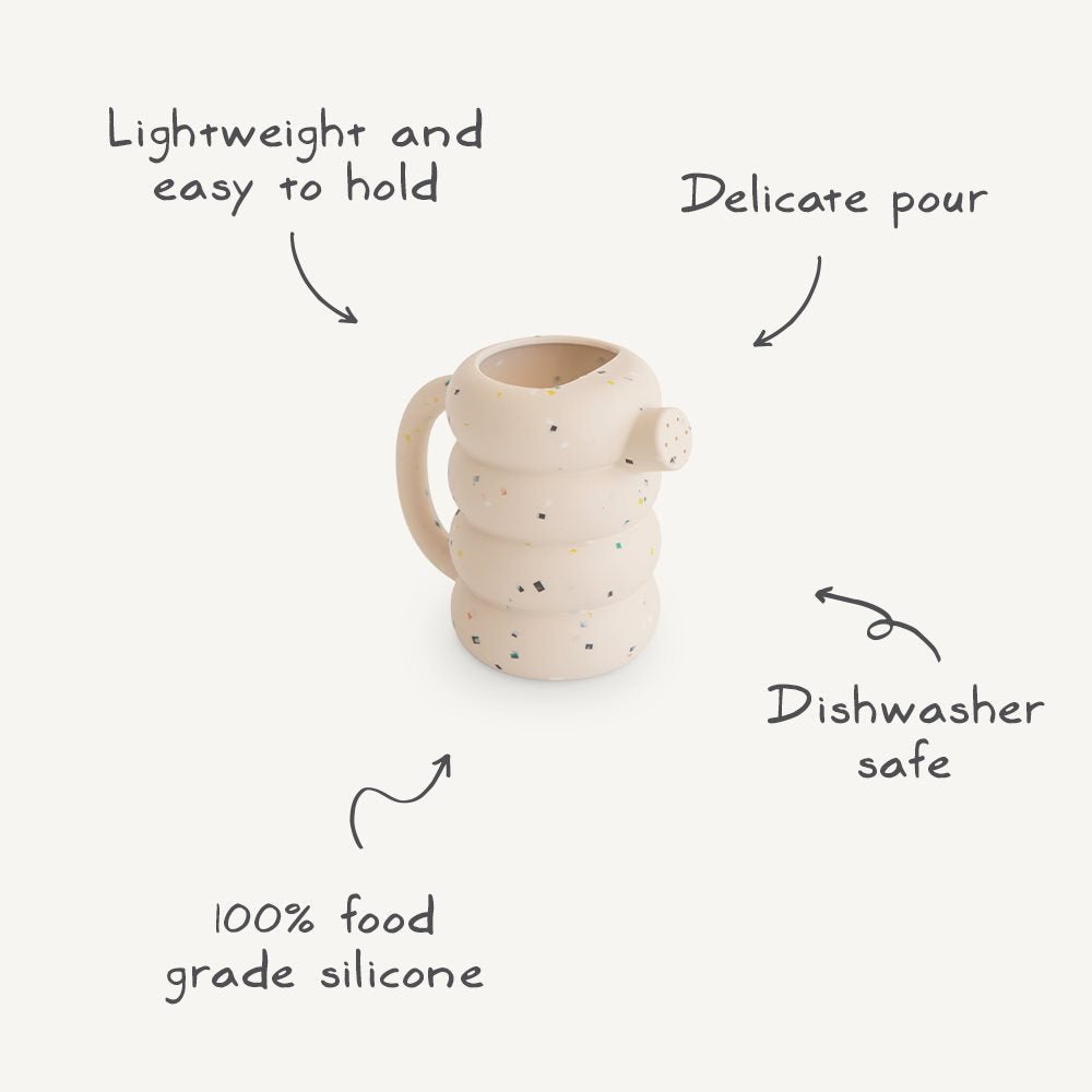 Ta urocza zabawka została zaprojektowana z myślą o małych rączkach i wykonana z miękkiego, elastycznego silikonu; idealna do delikatnego nalewania, nabierania i chlapania. Lekki, łatwy do trzymania kształt zachęca do rozwoju umiejętności motorycznych i dodaje zabawny element do zajęć z wodą.