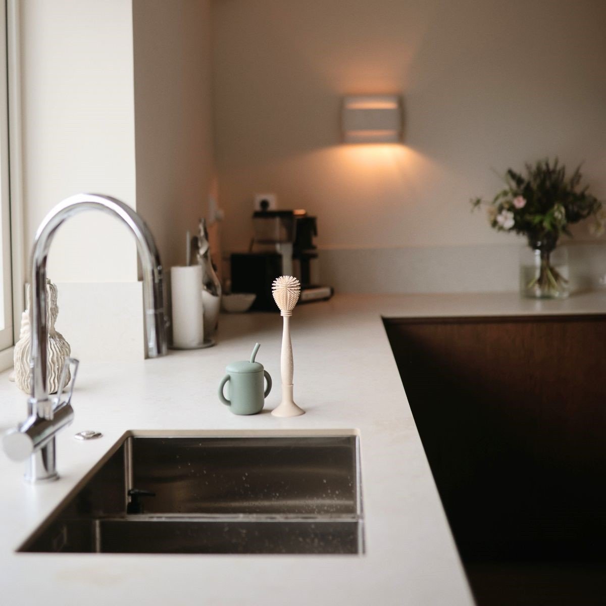 Wszechstronna szczotka do butelek jest również idealna do czyszczenia butelek na wodę i kubków niekapków, gdy Twoje dziecko rośnie.