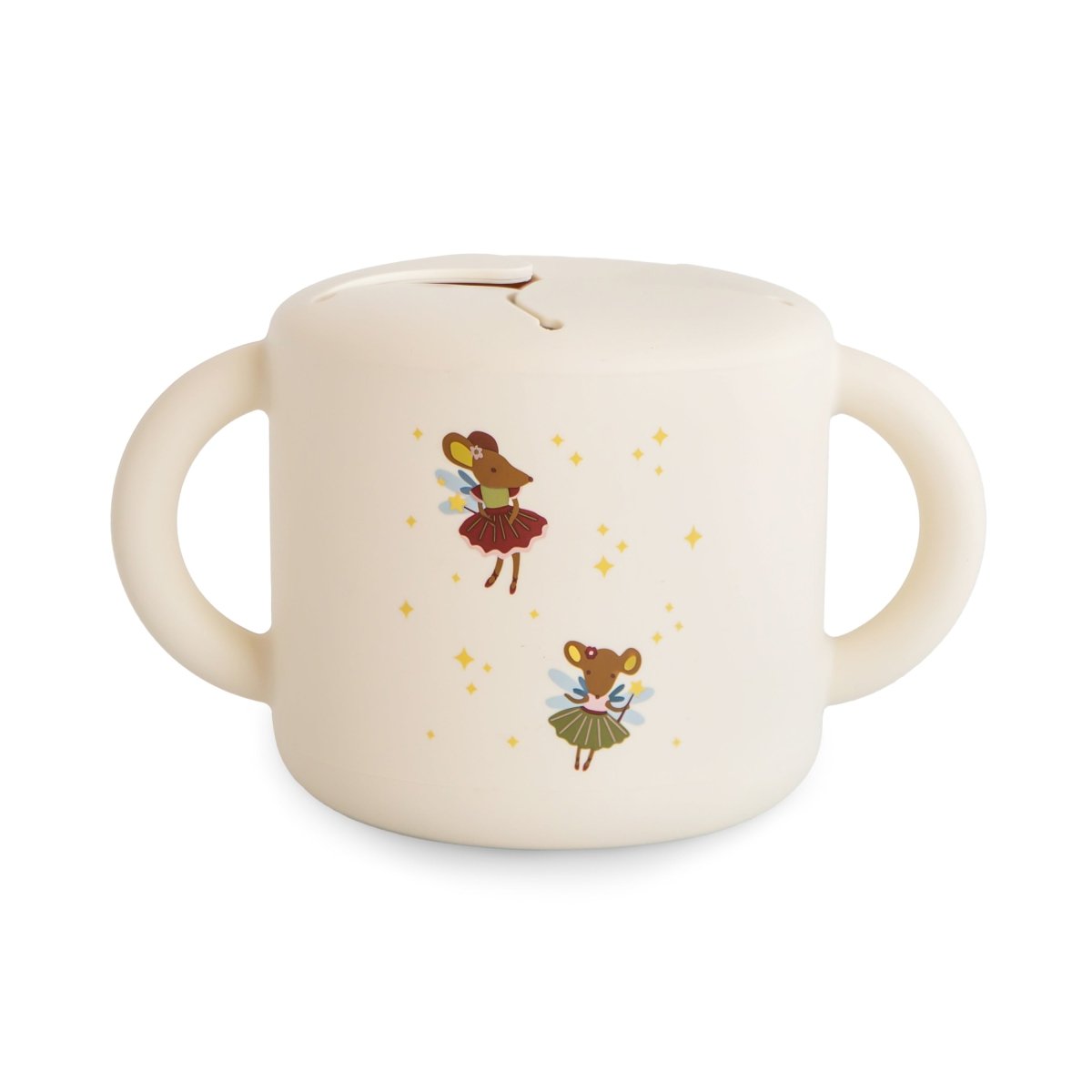 Kubek na przekąski jestodporny na rozlaniei zaprojektowany z wygodnymi uchwytami po bokach, aby zapewnić dziecku dobry chwyt. Miękki otwór ułatwia maluchowi wyciąganie przekąsek, podczas gdy przekąski pozostają bezpiecznie w środku.