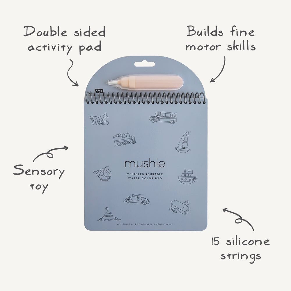 Każdy zestaw zawiera cztery wytrzymałe kartki , które z odrobiną wody zamieniają się w kolorowe sceny pełne niespodzianek. Dzięki dołączonemu pędzelkowi wielokrotnego napełniania , małe rączki mogą z łatwością "malować", bez bałaganu. Po wyschnięciu kolory znikają, a strony są gotowe do ponownego odkrycia