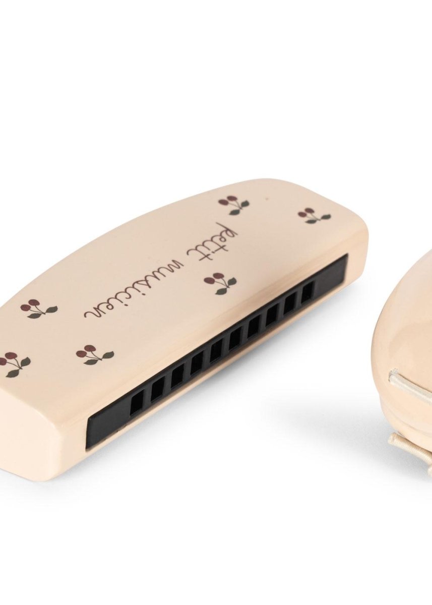 W zabawny sposób zapoznaj dzieci z muzyką dzięki temu zestawowi instrumentów muzycznych. Zestaw składa się z harmonijki ustnej, marakasów i kastanietów, schludnie przechowywanych w uroczym, małym etui. Idealny do zabrania ze sobą i łatwy do przechowywania.
