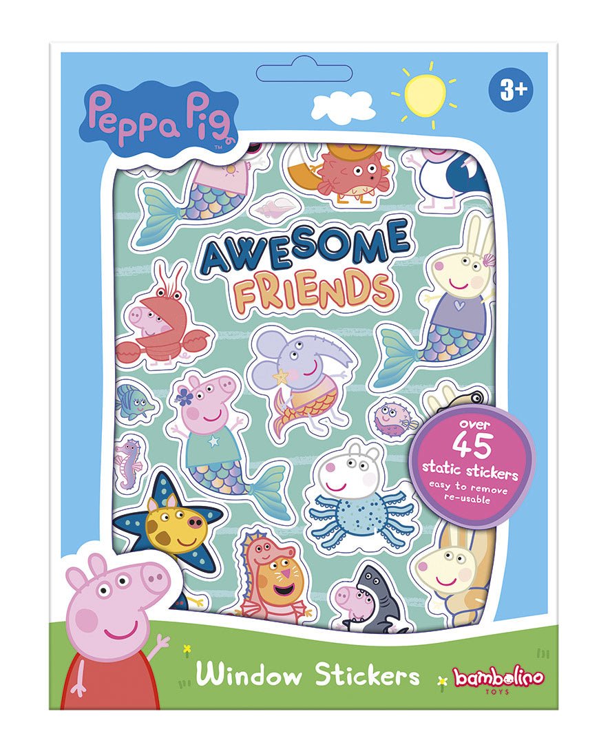 Z tymi naklejkami na okno Peppa Big nuda nie wchodzi w grę. Użyj ich w samochodzie, w domu na oknach, kafelkach lub lustrach lub stwórz własne przygody, używając naklejek na dołączonym tle. Zestaw zawiera ponad 60 naklejek z Peppą. Naklejki na okna działają bez użycia kleju i mogą być używane wielokrotnie na gładkiej powierzchni. Grunt, grunt!