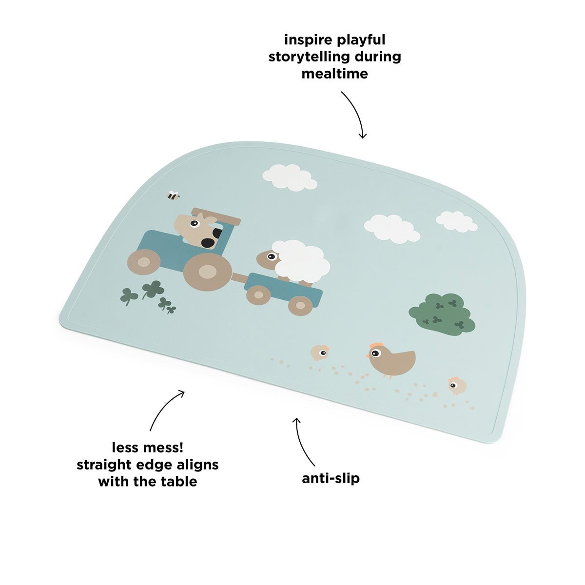 Spraw, aby jedzenie Twojego malucha było czyste i wolne od rozlanych płynów dzięki Silikonowej podkładce w kolorze Tiny farm Blue. Wykonana z 100% bezpiecznego dla żywności silikonu, trwała, elastyczna i łatwa do czyszczenia. Idealna do codziennego użytku w domu lub w podróży