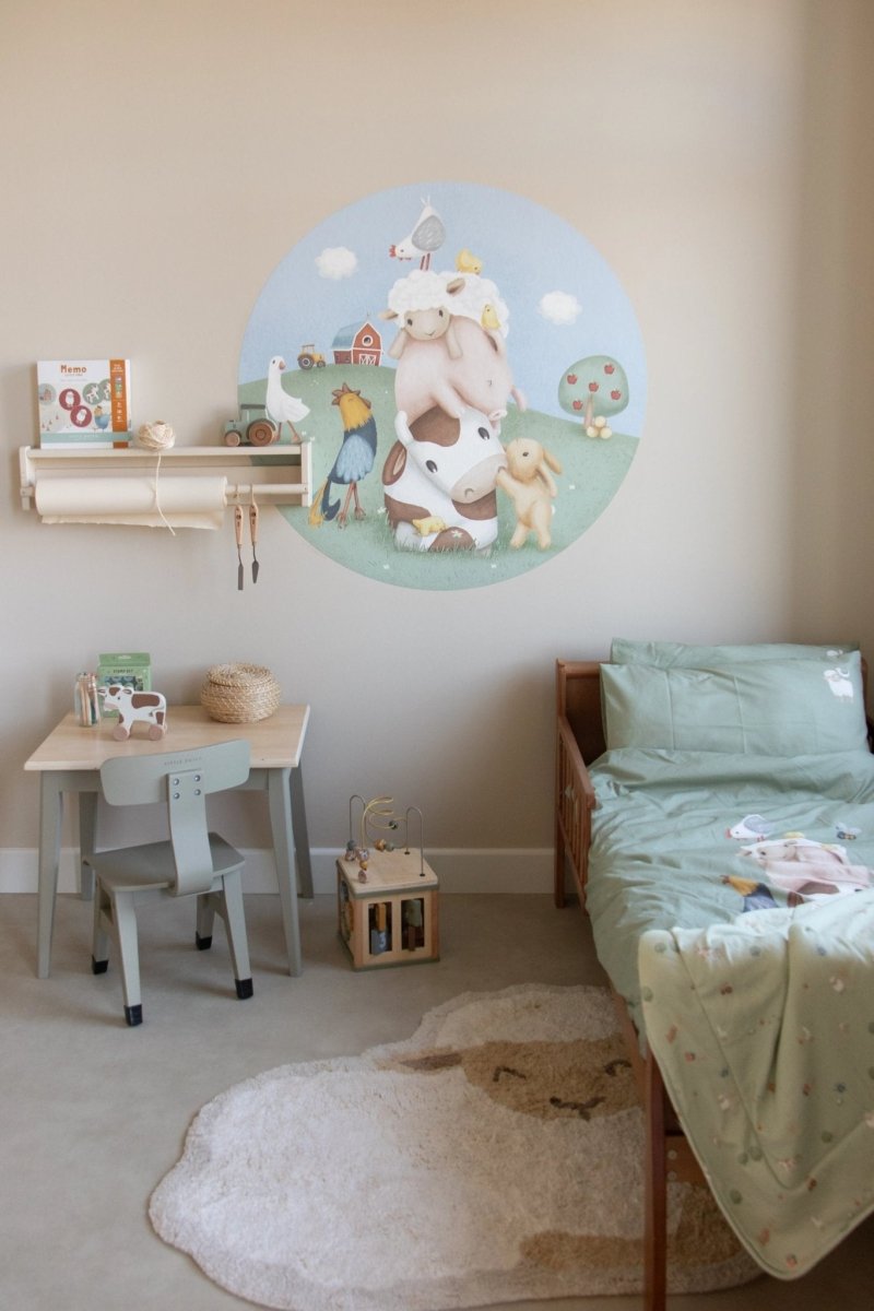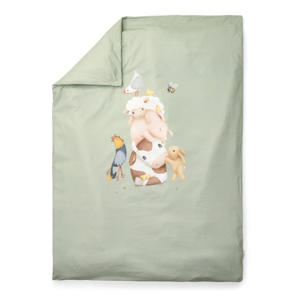 Dodaj stylowy i przytulny akcent do pokoju dziecięcego dzięki pięknie wykonanemu łóżeczku. Ta poszewka na kołdrę zabierze Twojego malucha na wymarzone przygody na farmie. Wykonana w 100% z bawełny organicznej, jest cudownie miękka w dotyku i oddychająca, idealna do komfortowego snu. Prosty zielony kolor w połączeniu ze słodką sceną z farmy tworzy zabawny i kojący wygląd. Poszwa na kołdrę ma rozmiar 110 x 140 cm i pasującą poszewkę na poduszkę 40 x 60 cm. Obie są starannie wykończone i zaprojektowane, aby zapewnić Twojemu maluchowi wspaniały sen. Idealny wybór dla małych miłośników farmy!