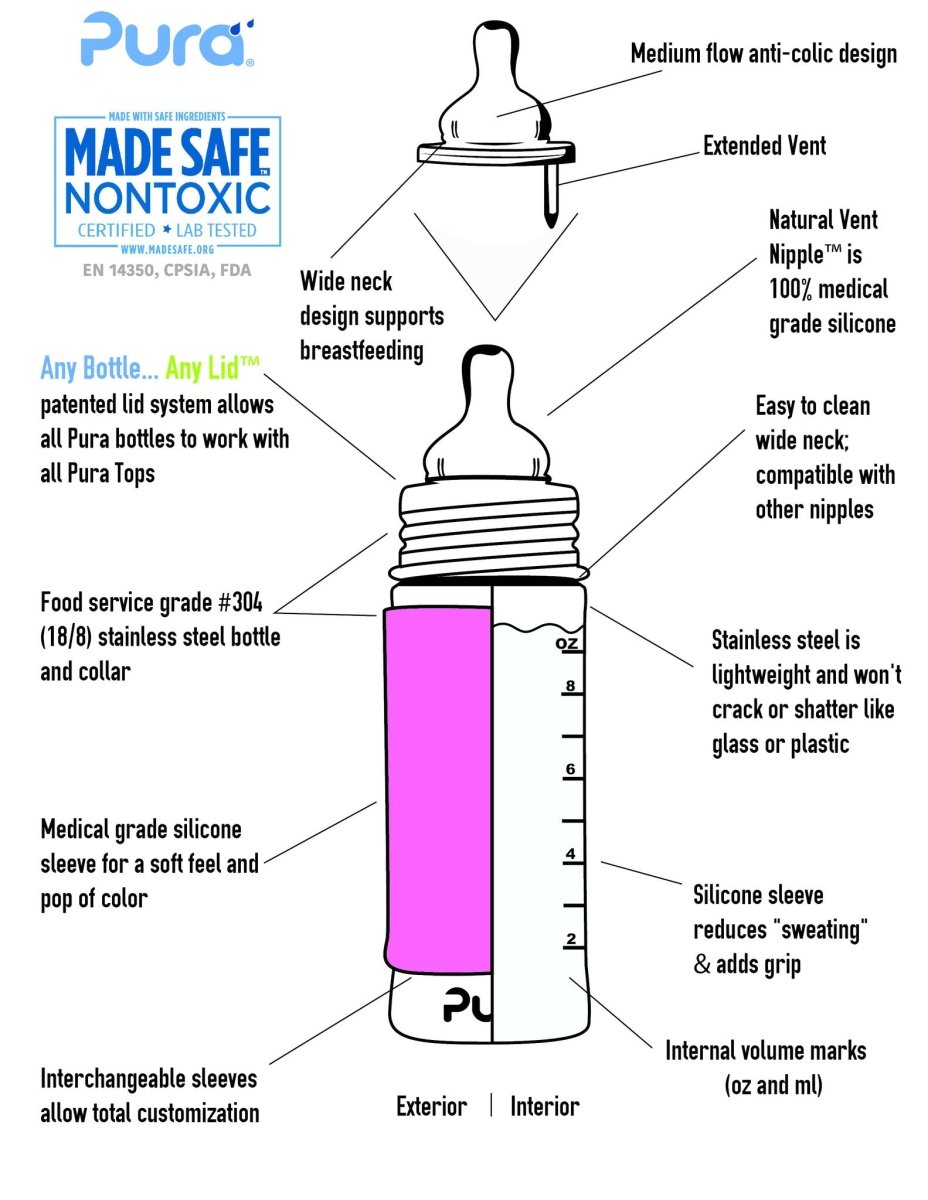 Pura Butelka dla niemowląt ze stali nierdzewnej 325 ml zestaw niebieski 4 szt.