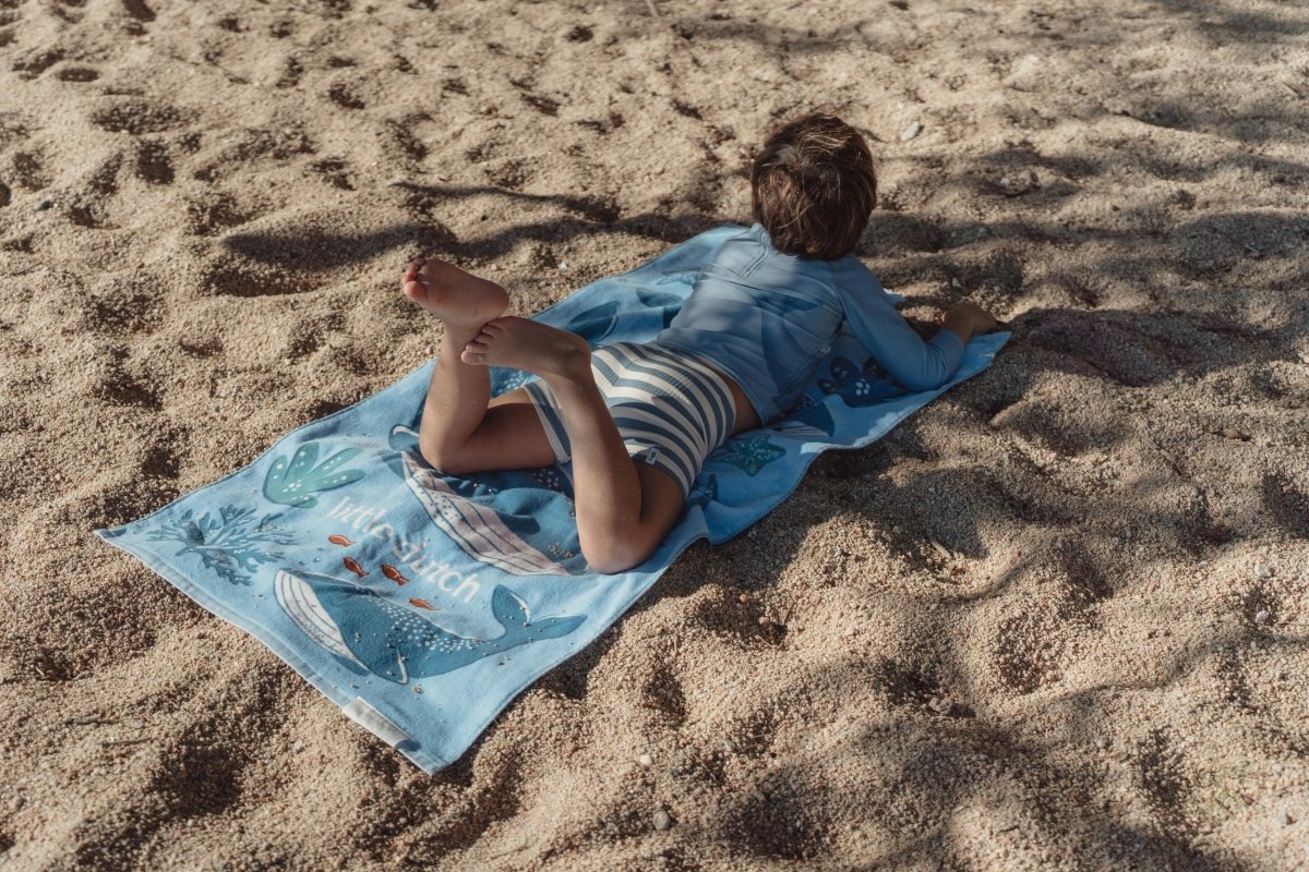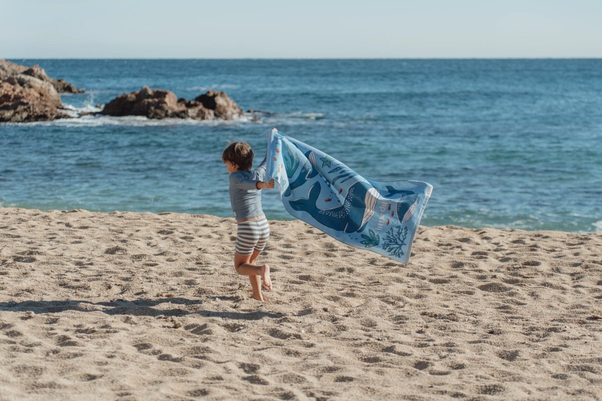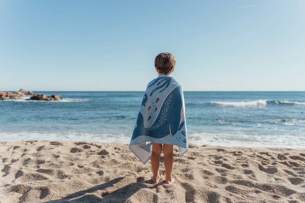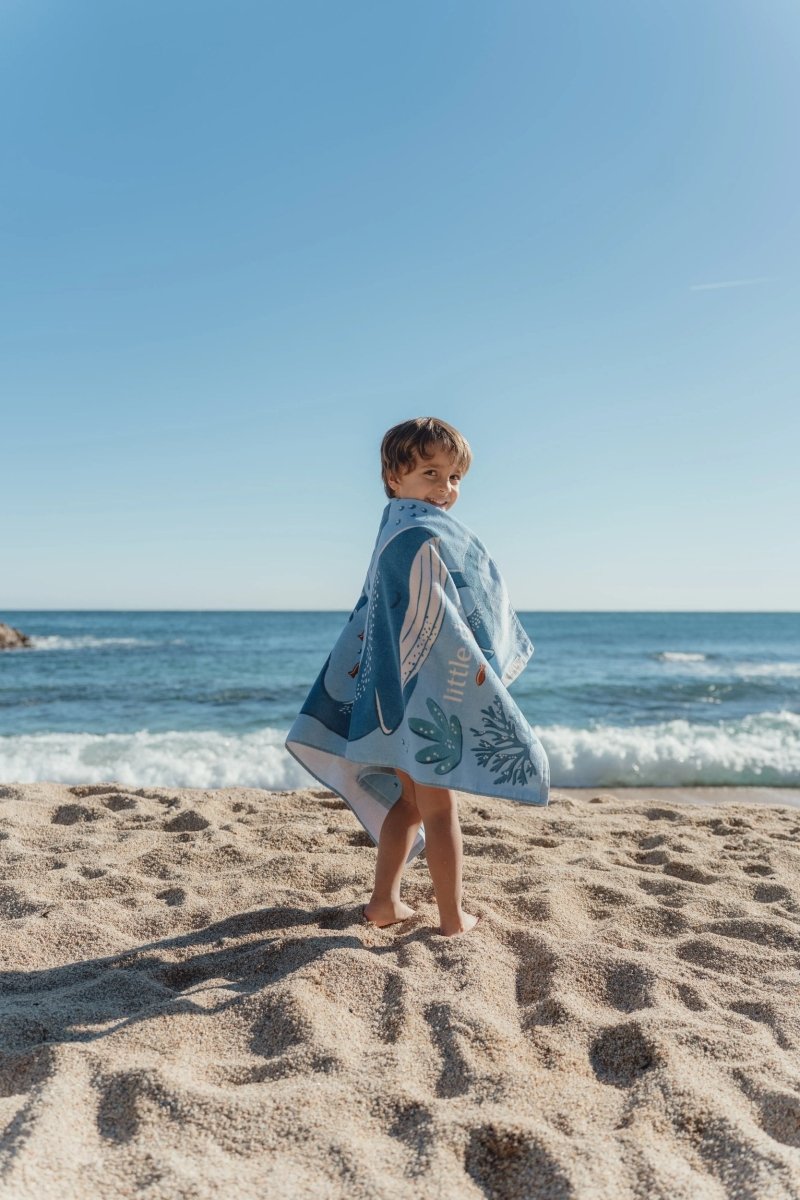 Ten niebieski ręcznik plażowy z kolekcji Ocean World Blue jest cudownie miękki i wygodny dla Twojego malucha. Dzięki wesołemu nadrukowi z morskimi przyjaciółmi każda chwila suszenia staje się prawdziwą zabawą – czy to po zabawie na plaży, w basenie, czy po kąpieli w domu.
