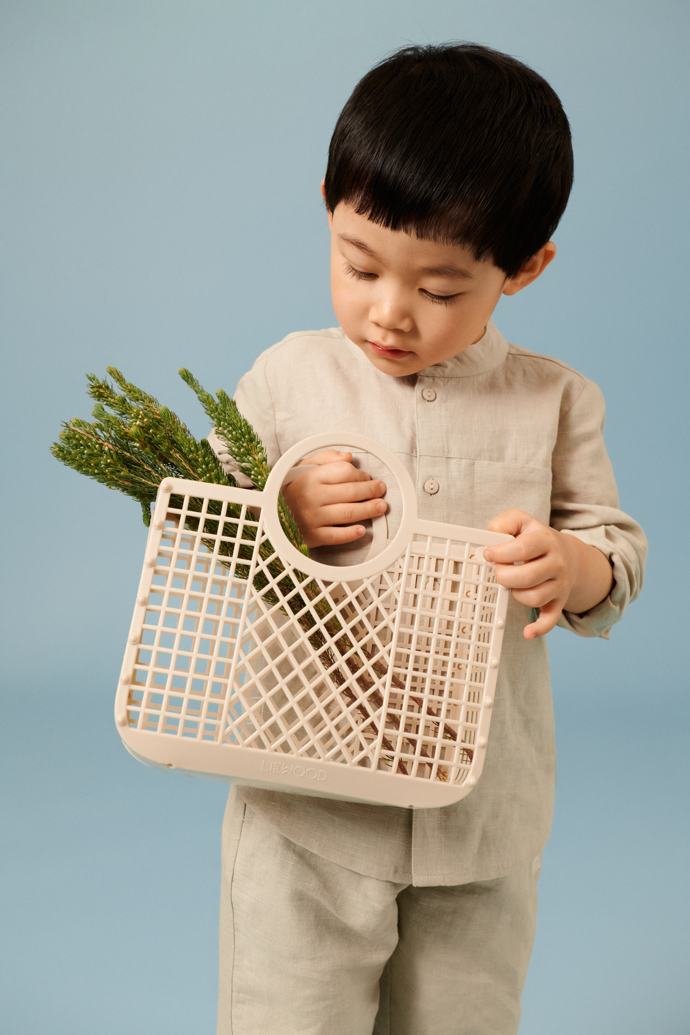 Ta średniej wielkości torba koszykowa jest idealna zarówno do domu, jak i w podróży. Dzięki elastycznemu materiałowi i lekkiej konstrukcji torba jest łatwa w montażu i ponownym montażu. Idealna do przechowywania zabawek, książek lub małych skarbów i nadaje się do zabrania w podróż.