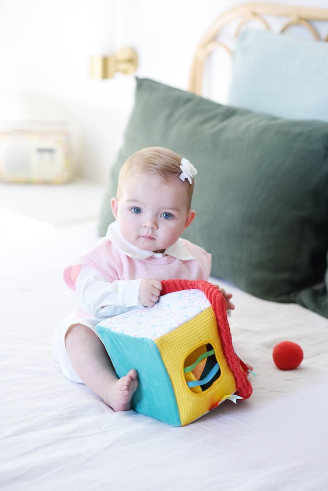 Wyjmowanie i wkładanie przedmiotów to świetna zabawa dla Twojego dziecka. Wkładając małe paluszki przez gumki do okien i otwór w dachu, Twoje dziecko rozwinie zręczność i umiejętności motoryczne podczas zabawy.