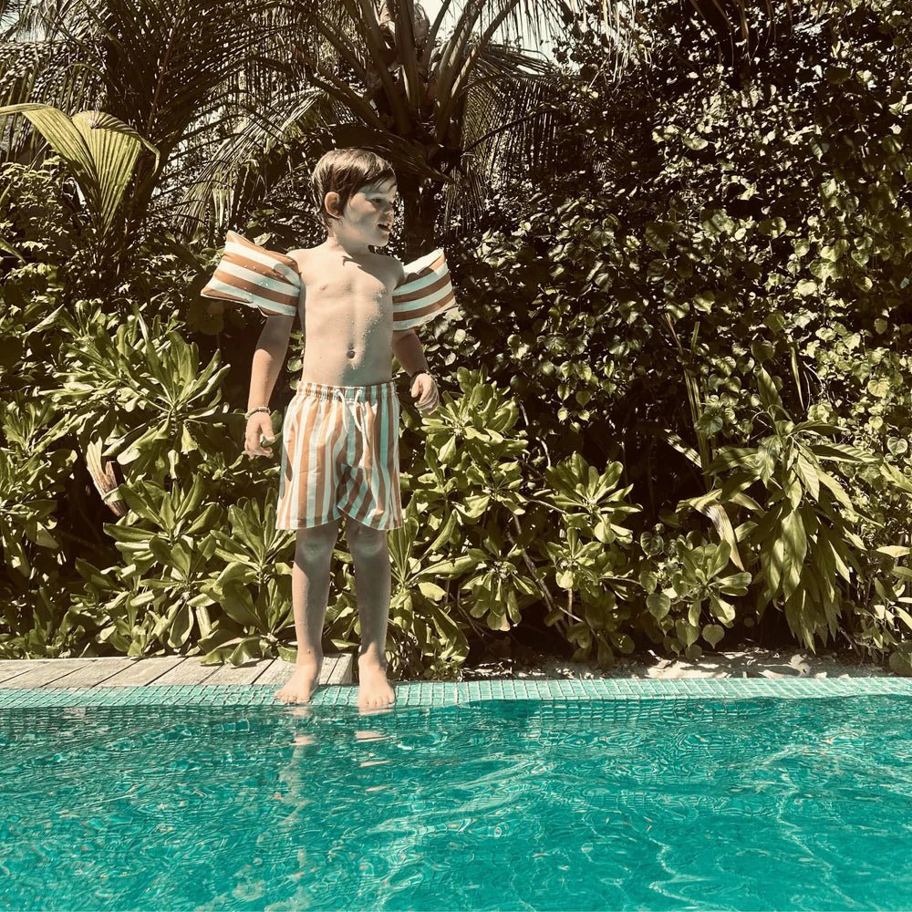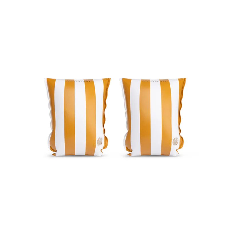 Zawartość opakowania: Swim Essentials Nadmuchiwane opaski pływackie w żółte paski 2-6 lat (15-30 kg) Liczba: 1 para Odpowiednie dla: 2-6 lat (15-30 kg) Materiał: PVC