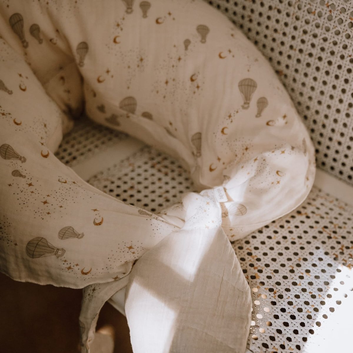 Ta piękna, innowacyjna i wielofunkcyjna poduszka do ssania została zaprojektowana dla przyszłych i nowych rodziców, aby zapewnić najlepszy początek zupełnie nowego i niesamowitego rozdziału. Poduszka do karmienia zaspokaja podstawowe potrzeby podczas karmienia piersią lub butelką. Dzięki tej pionierskiej poduszce do karmienia piersią, karmienie piersią bliźniąt nie jest wyzwaniem, ponieważ jej długość jest wystarczająco długa, aby nakarmić dwoje dzieci. Praktyczną i przenośną poduszkę można łatwo zawiązać wokół ciała. Jest to szczególnie wygodne, gdy musisz wstać i wyjąć dziecko z kołyski, aby nakarmić je piersią. Miękki listek jest przymocowany do każdego końca poduszki do karmienia piersią, dzięki czemu dziecko zawsze ma w zasięgu ręki pocieszający materiał. Co więcej, można ją formować i zapewnia wygodne wsparcie dla matki i dziecka podczas karmienia piersią, jako poduszka do spania lub jako wsparcie lędźwiowe dla ciężarnej matki. Jednocześnie służy jako idealne podparcie, gdy dziecko musi leżeć na brzuchu, jako krzesełko lub podparcie szyi, gdy dziecko rośnie