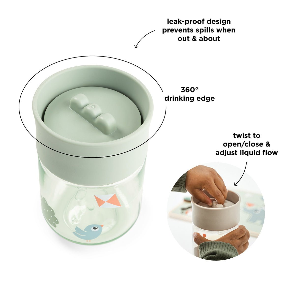 Pozwól swojemu maluchowi pić samodzielnie dzięki Kubkowi do ćwiczeń 360° w kolorze Playground Green. Wykonany z Tritanu, z pokrywką z PP i silikonu, zapobiegającą rozlaniu. Trwały, bezpieczny i idealny do codziennego użytku, w domu lub w podróży.