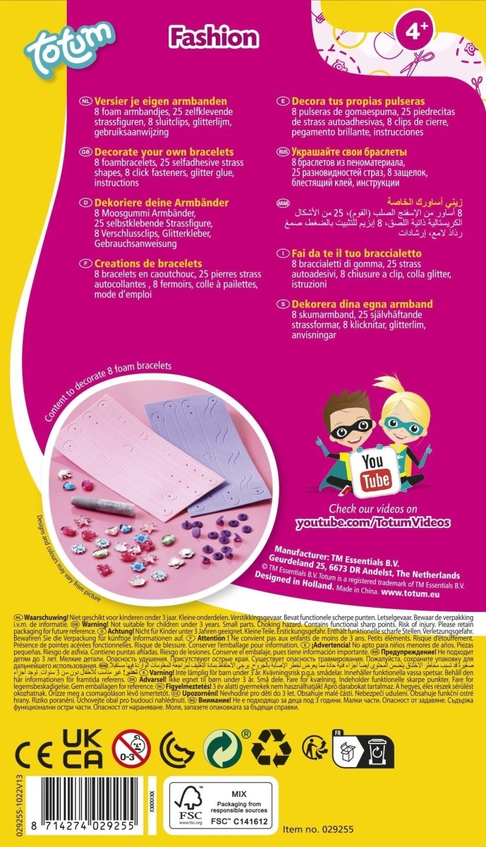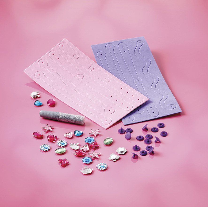 Wykonaj całą serię bransoletek z kolorowej pianki. Pokryj je dżetami w kształcie koron, motyli, serc i kwiatów i wykończ srebrnym klejem brokatowym. Bądź kreatywny z Totum!