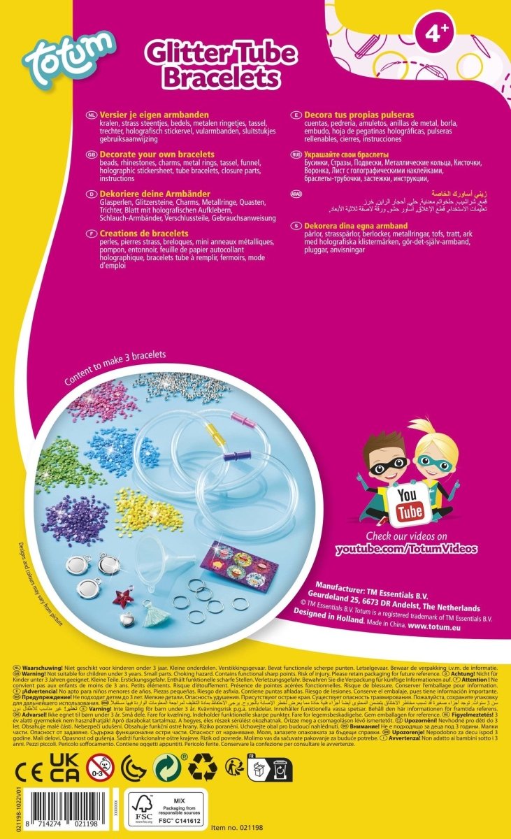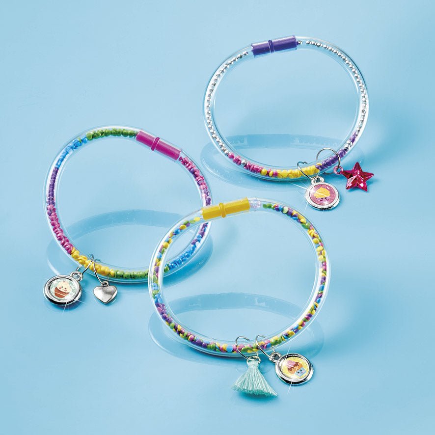 Super zabawa z najnowszymi bransoletkami z charmsami od Totum: wypełnij swoje 3 rurkowe bransoletki ponad 2400 błyszczącymi kamieniami w wesołych kolorach. Wybierz własne kombinacje kolorów i udekoruj je charmsami. Zamknij je bezpiecznie, wybieraj i mieszaj, aby bawić się nimi każdego dnia