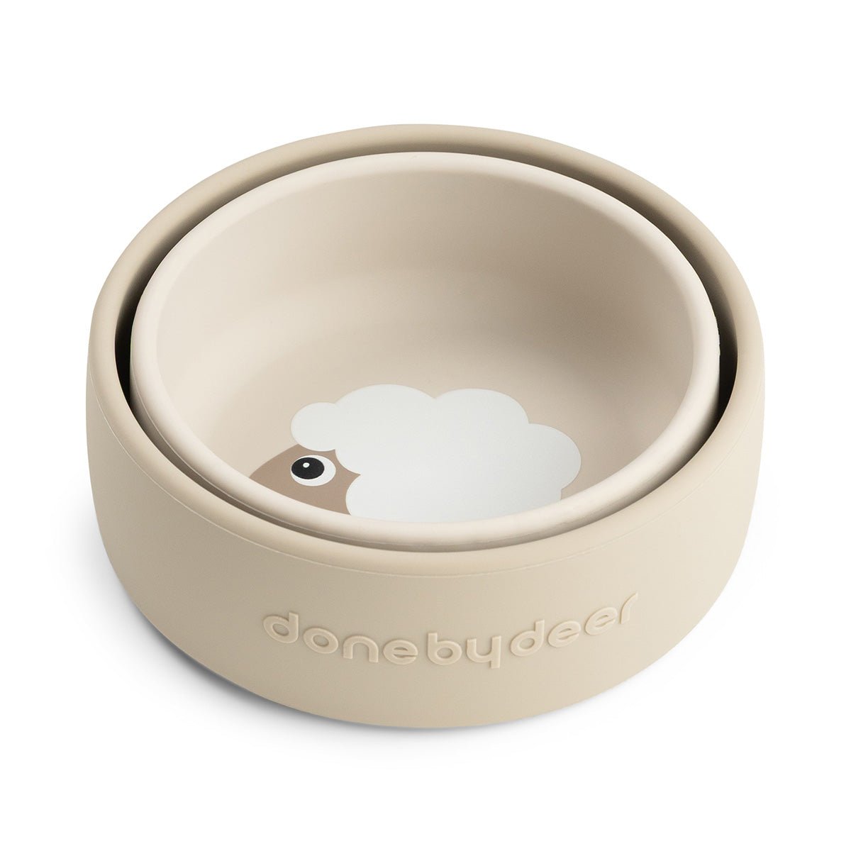 Podawaj posiłki bezpiecznie i stylowo z zestawem silikonowych miseczek 2 sztuki w kolorze Sheepy Sand. Wykonane z 100% bezpiecznego dla żywności silikonu, trwałego, elastycznego i miękkiego dla małych rączek. Idealny do codziennego użytku, w domu lub w podróży