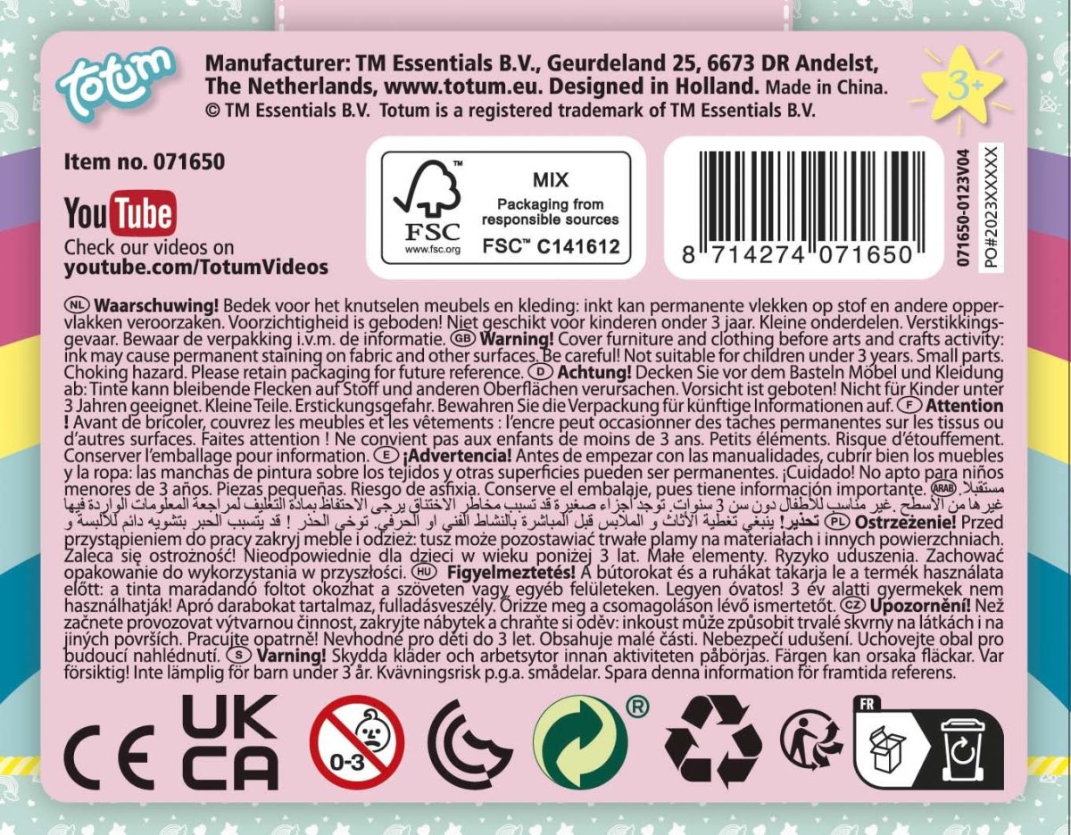 Te super słodkie stemple Totum to świetna zabawa, która rozjaśni twoje rysunki lub dzieła sztuki. Dzięki pięknemu jednorożcowi i innym fantastycznym postaciom stworzysz najpiękniejsze kreacje